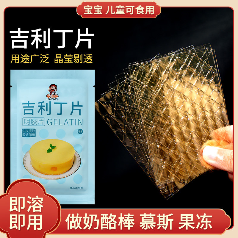 📚 吉利丁片食用明胶家用烘焙凝胶儿童奶酪棒果冻慕斯蛋糕布丁芝士