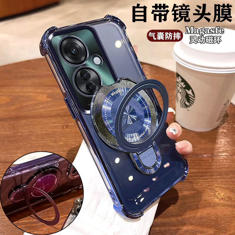 📚 适用OPPOReno11F手机壳防摔CPH2603创意四角气囊ren011f保护套5G高档磁吸支架轻奢0pp0全包镜头膜ins男女简约