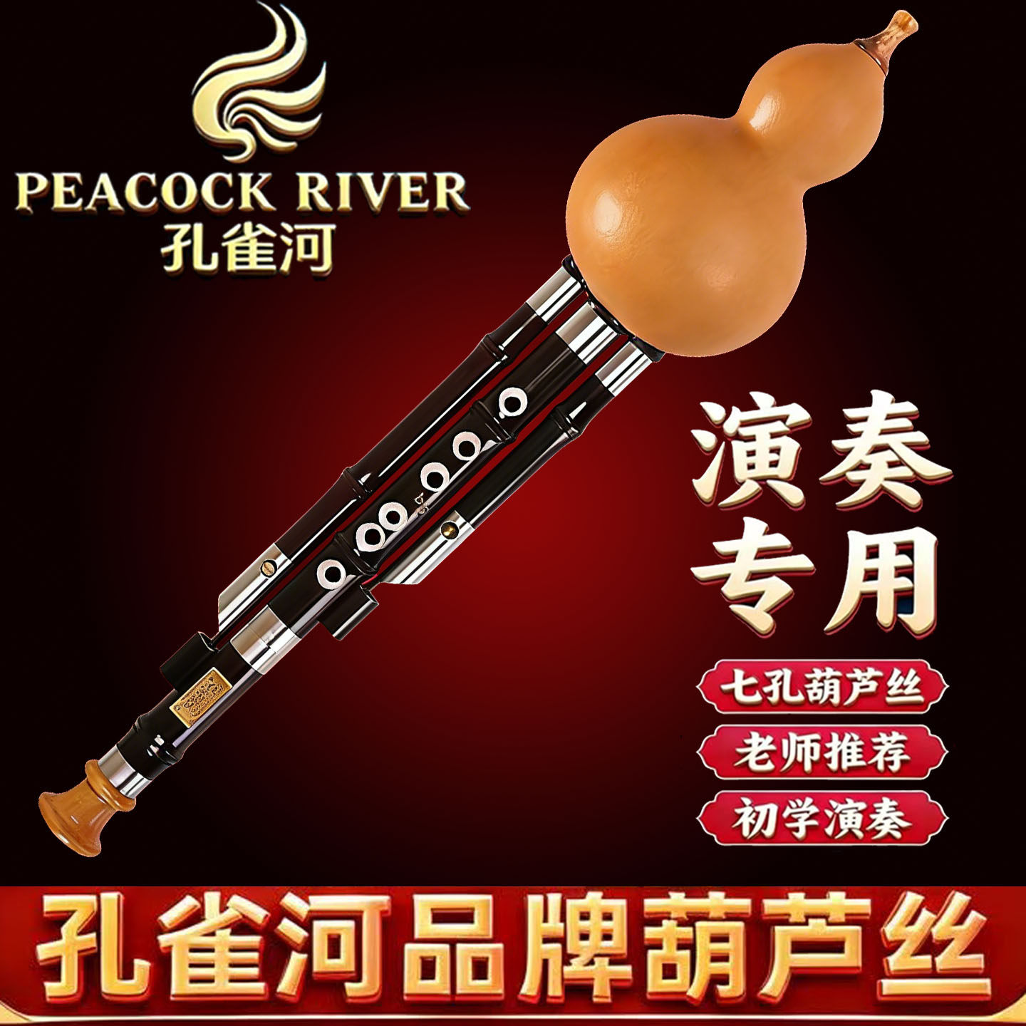 📚 孔雀河高端演奏款葫芦丝 黑檀木镶孔C调/降B/小D/GF调 舞台演奏