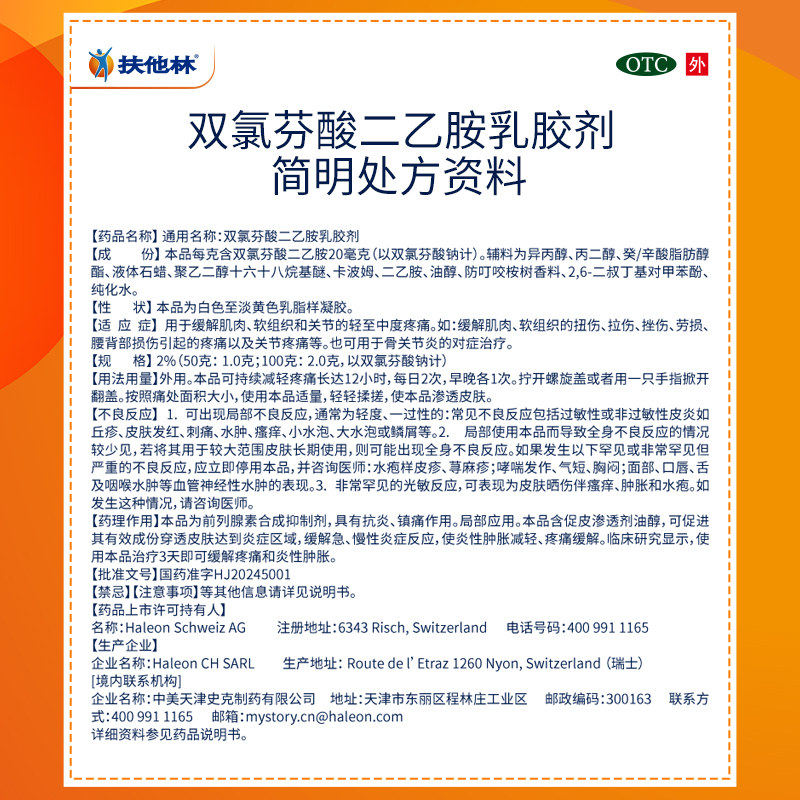 📚 扶他林双氯芬酸二乙胺乳胶剂50g关节炎腰痛双氯芬酸消痛胶乳胶剂