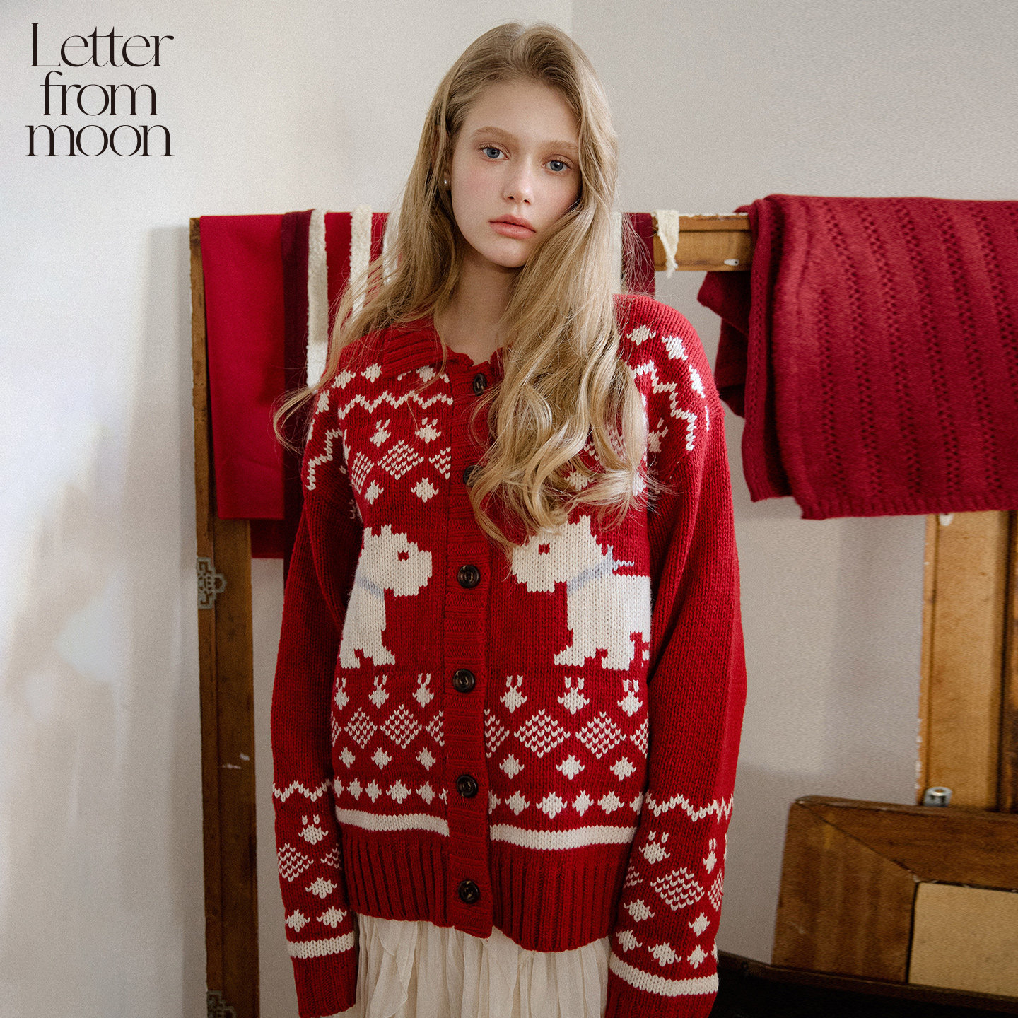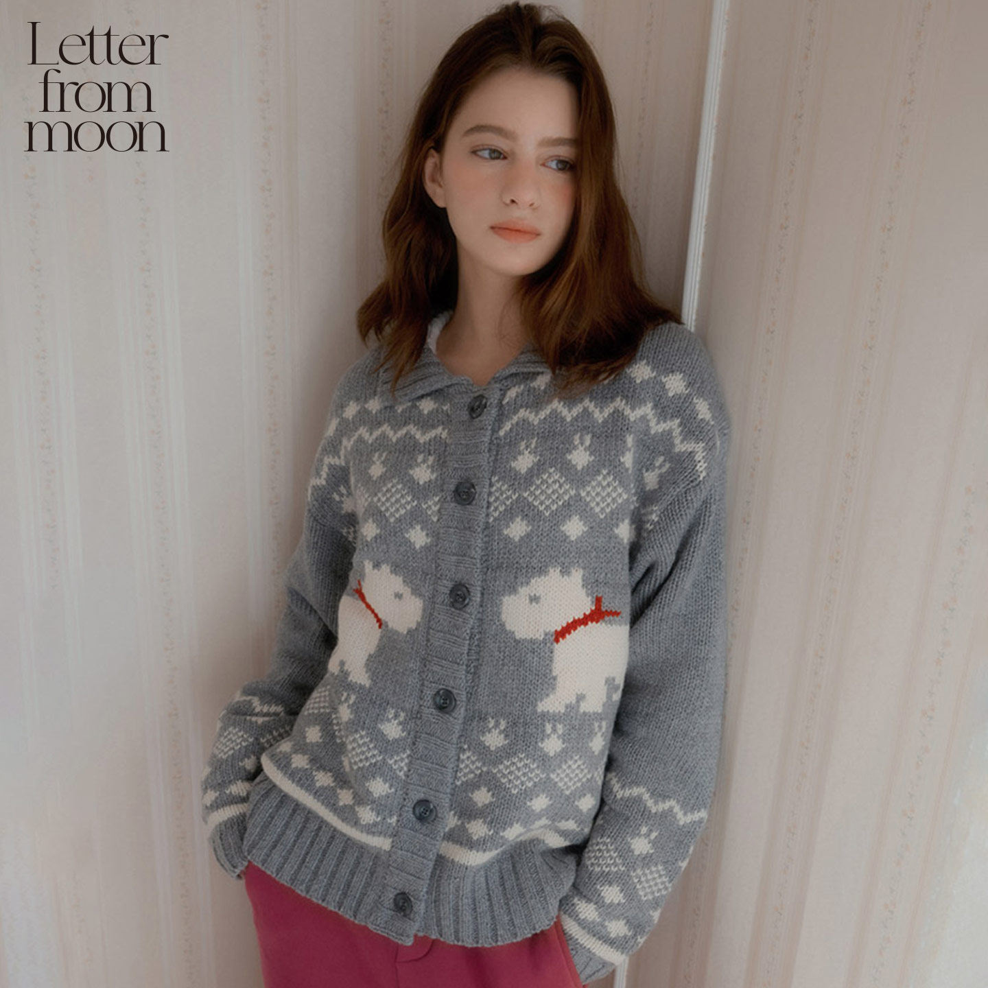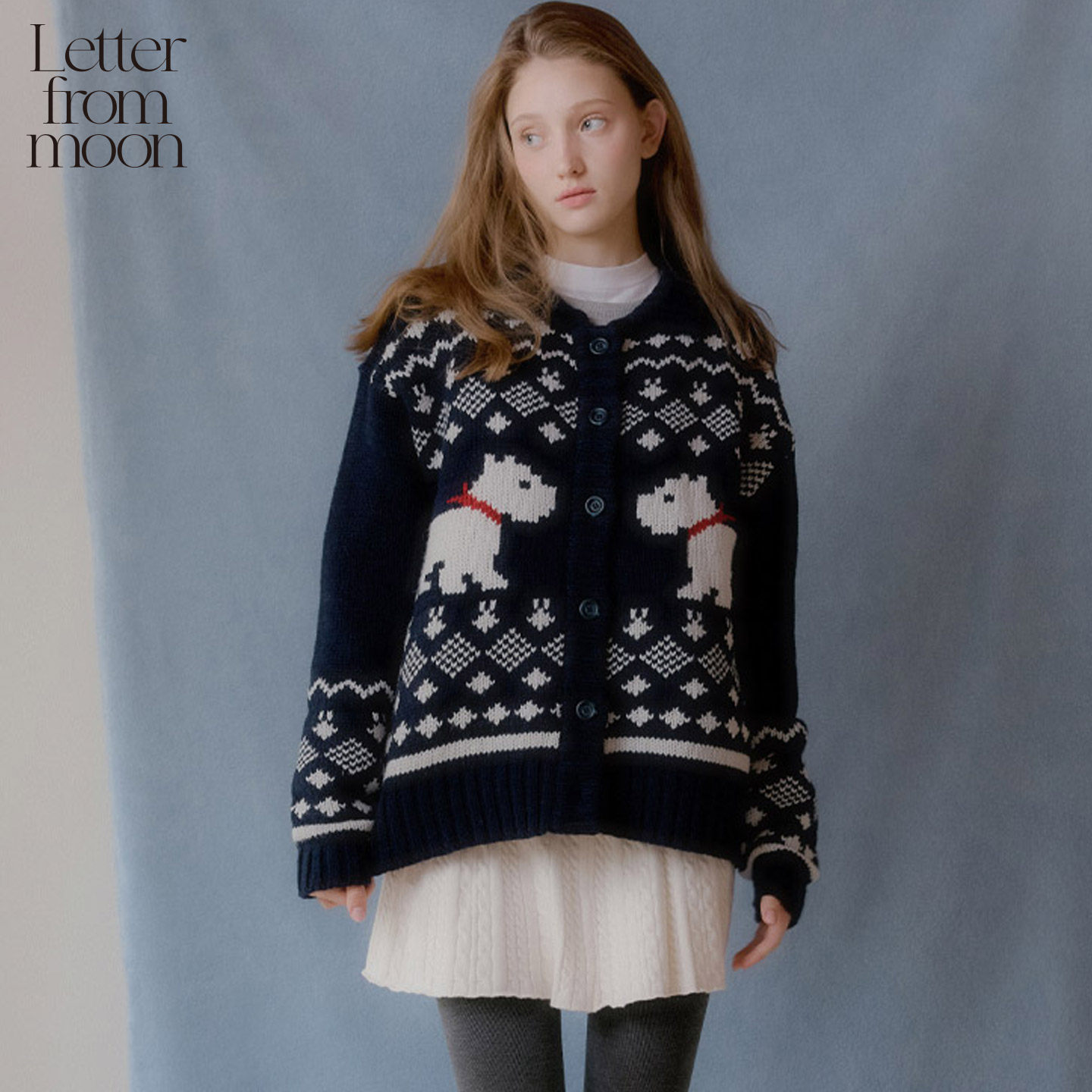 📚 Letter from moon 2025冬季新款羊毛毛衣费尔岛风小狗针织外套