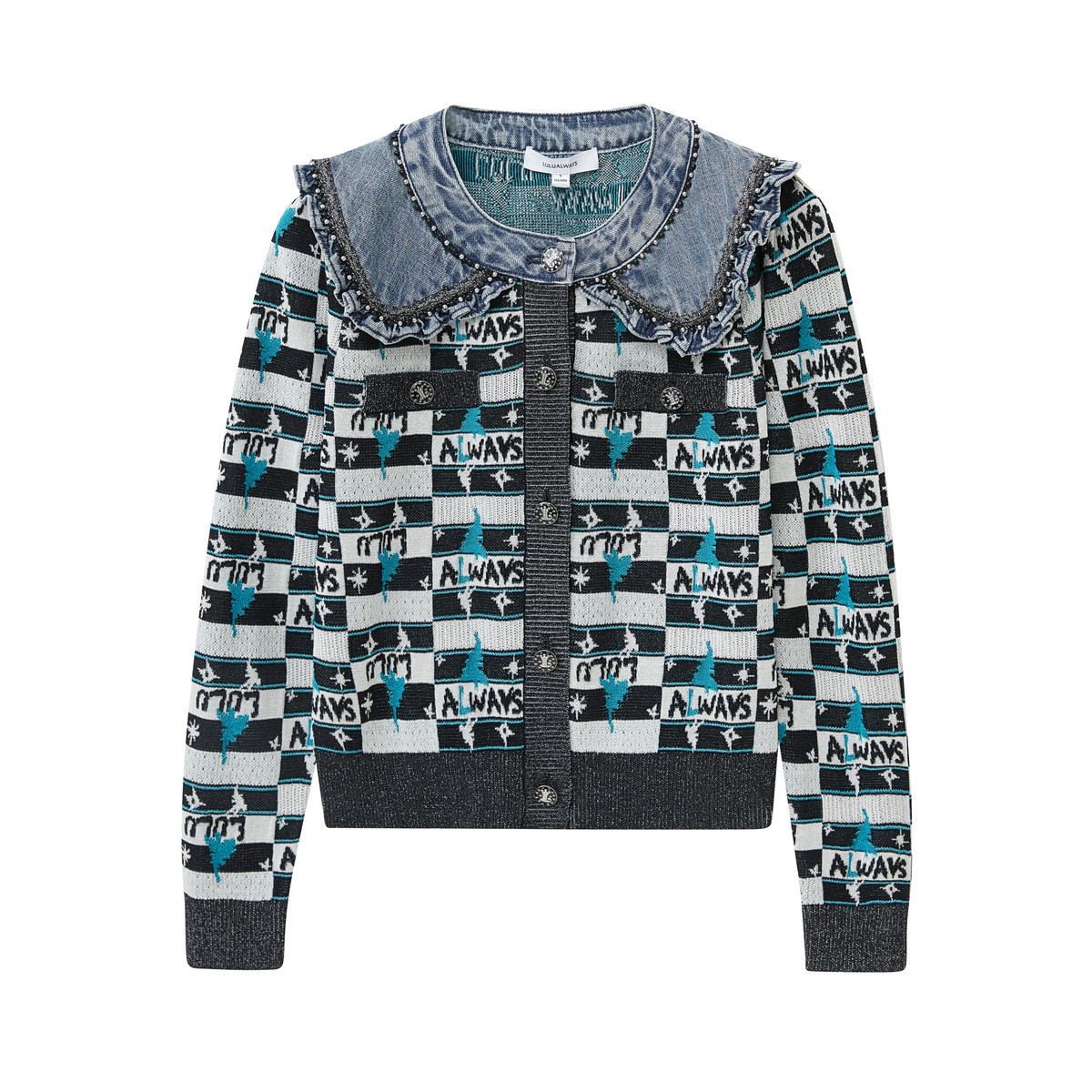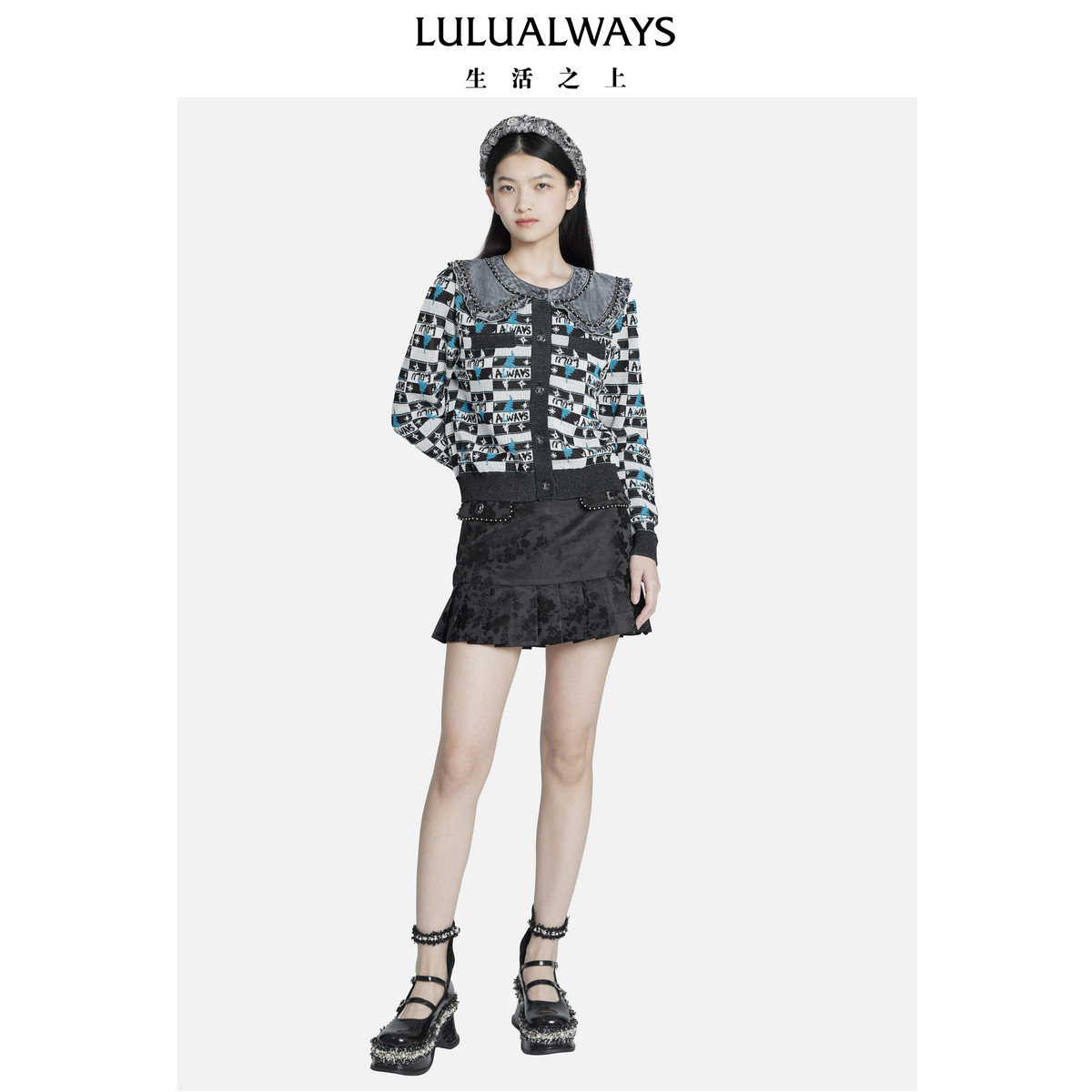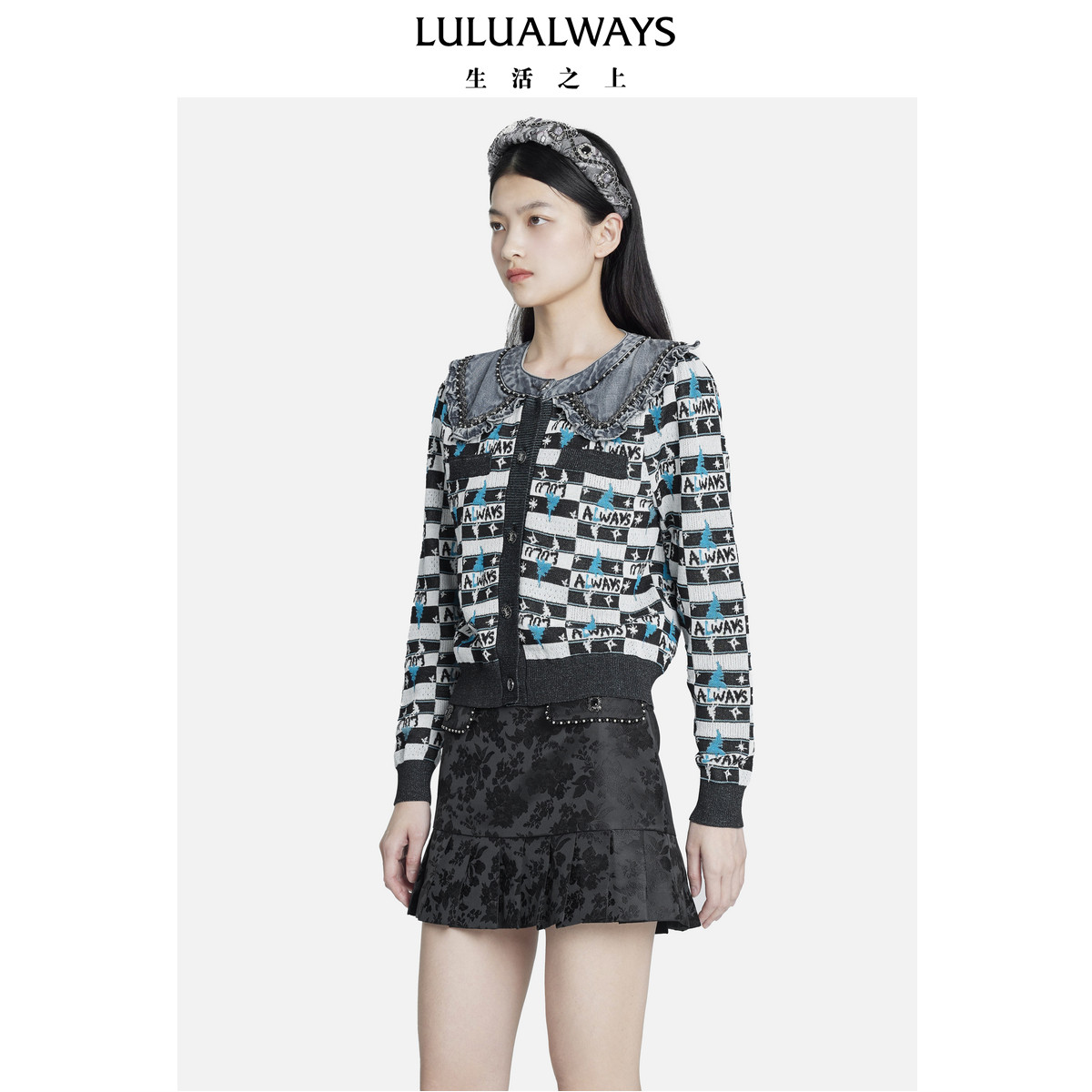 📚 我爱露露LULUALWAYS秋季新款别致减龄拼接娃娃领针织开衫