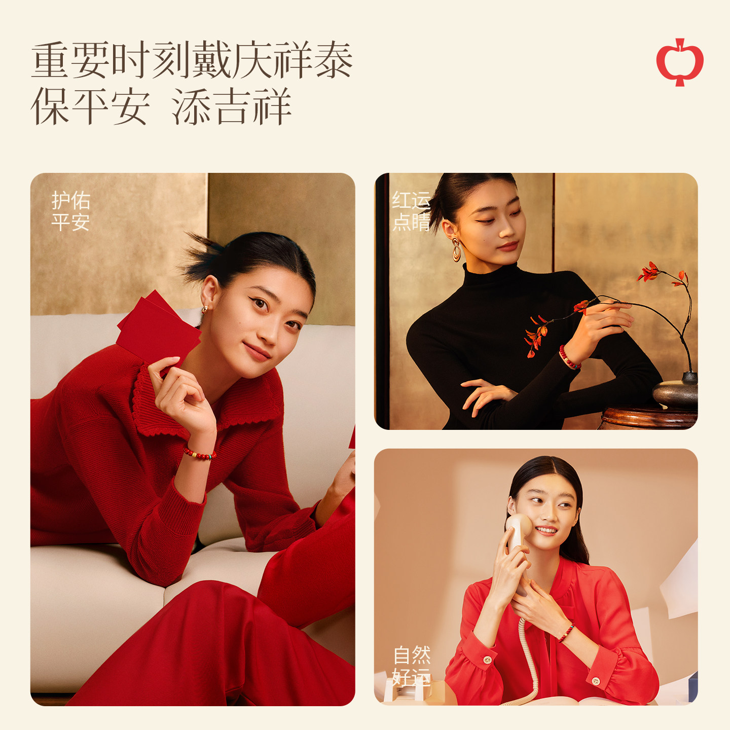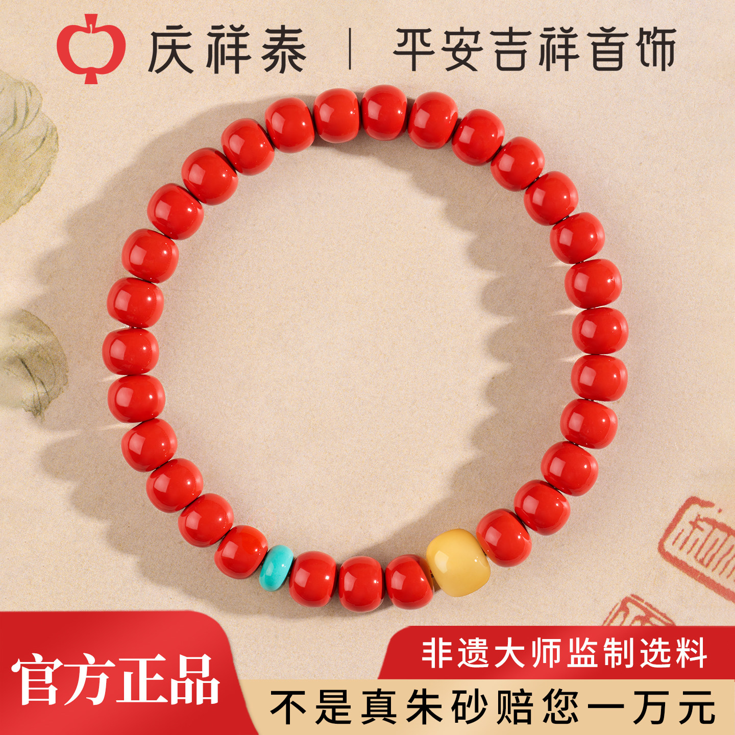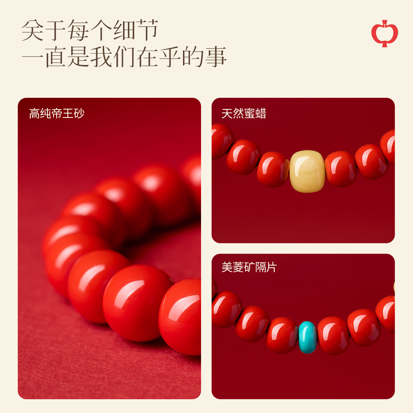 📚 【2026柿柿如意】庆祥泰朱砂手串正品天然蜜蜡女款手链本命年礼物