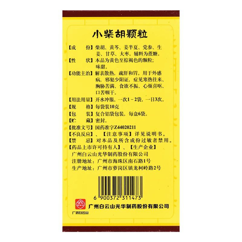 📚 小柴胡颗粒白云山正品6袋感冒药冲剂解表散热疏肝和胃口苦干呕ON