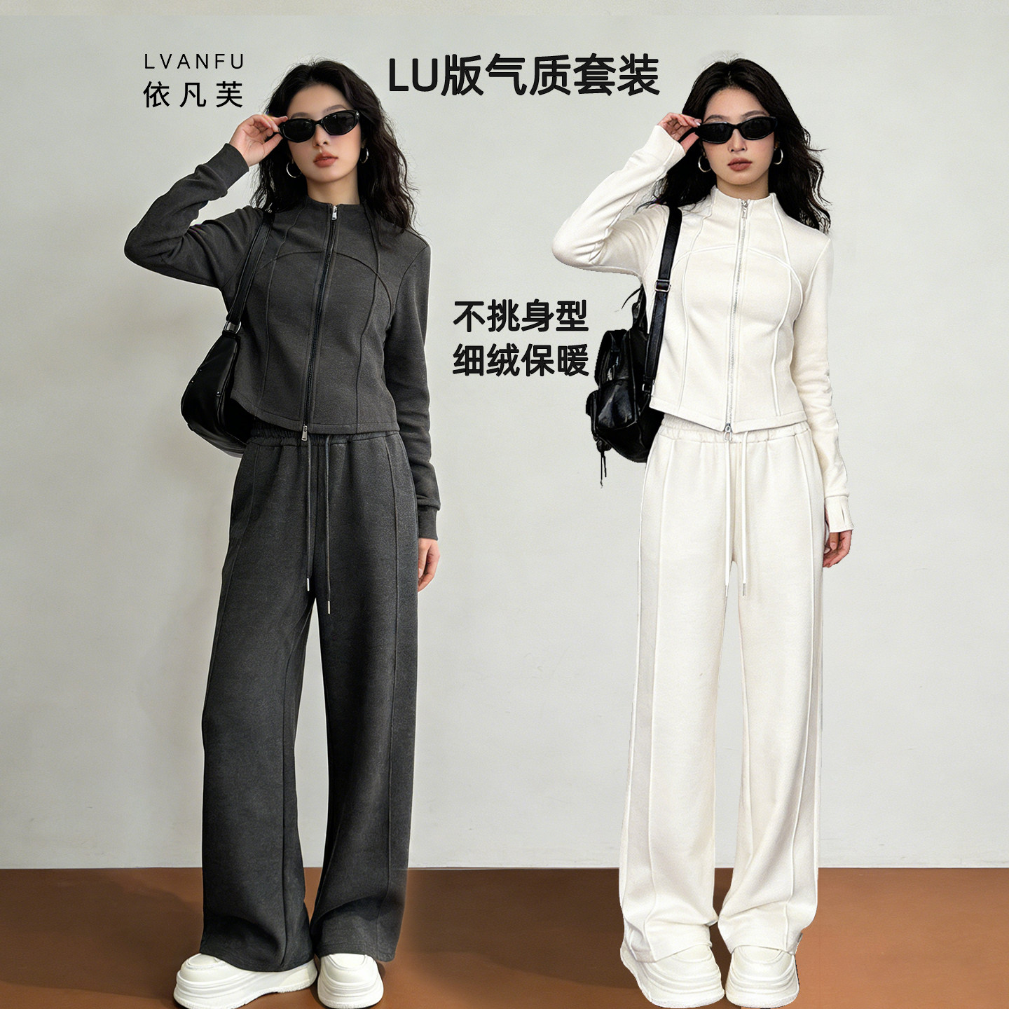 📚 依凡芙韩系一整套ootd穿搭Lulu同款套装女装冬气质加绒卫衣套装