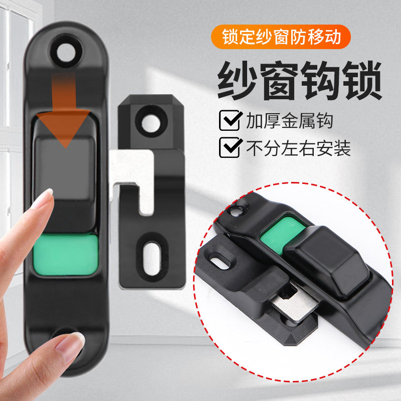 📚 推拉折叠门纱窗钩锁金刚网铝合金平移门窗纱防盗锁扣塑料插销