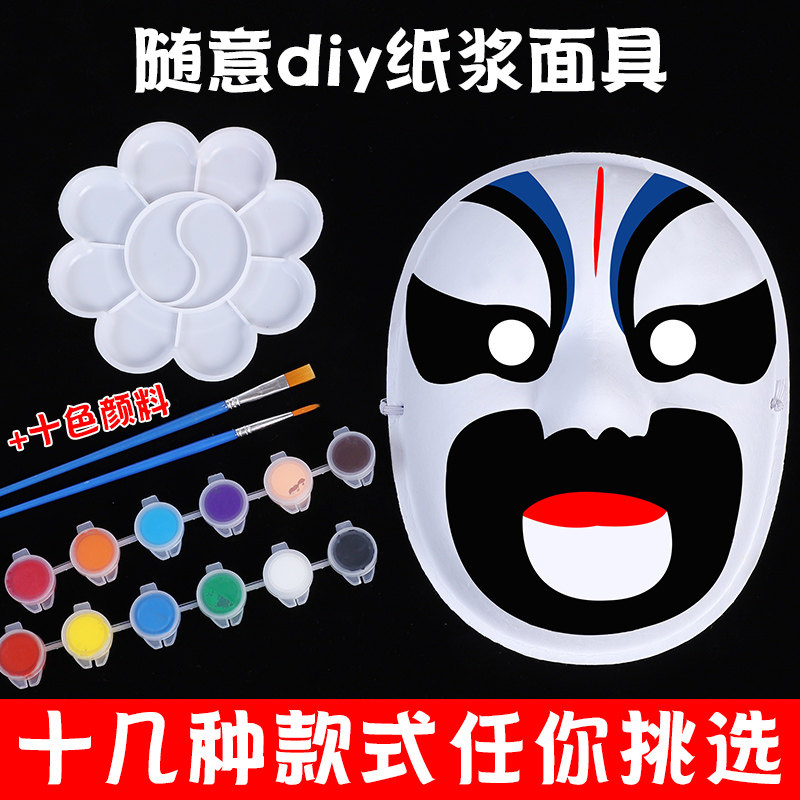 📚 万圣节脸谱面具纸浆京剧狐狸空白马勺儿童手工diy材料包绘面用品