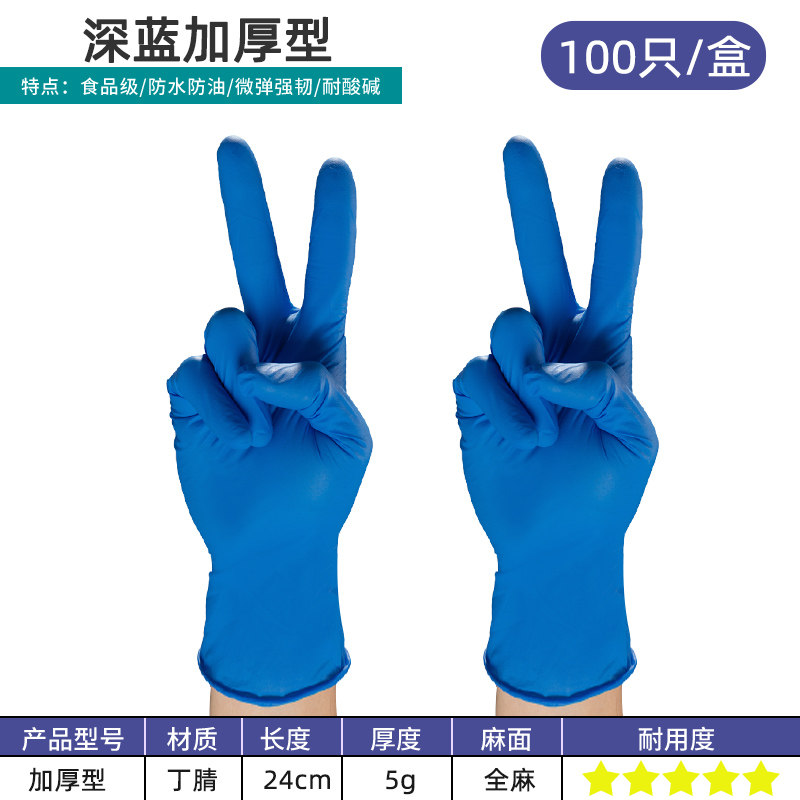 📚 6g蓝特厚一次性手套丁腈橡胶耐用耐磨劳保修理防油耐酸腐家用防护