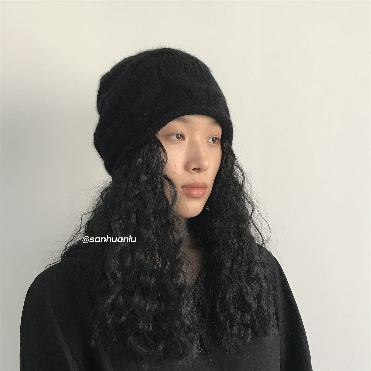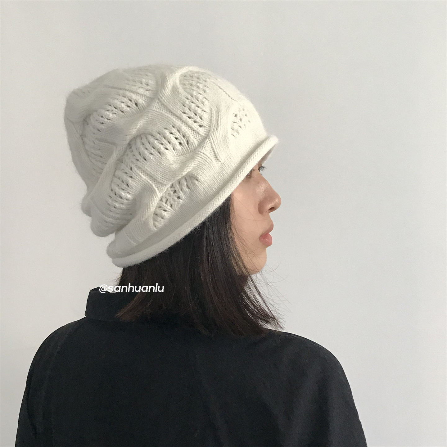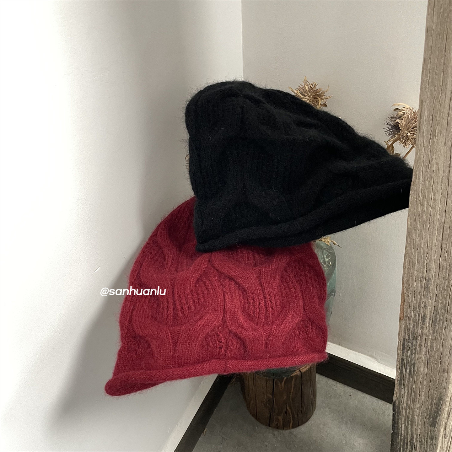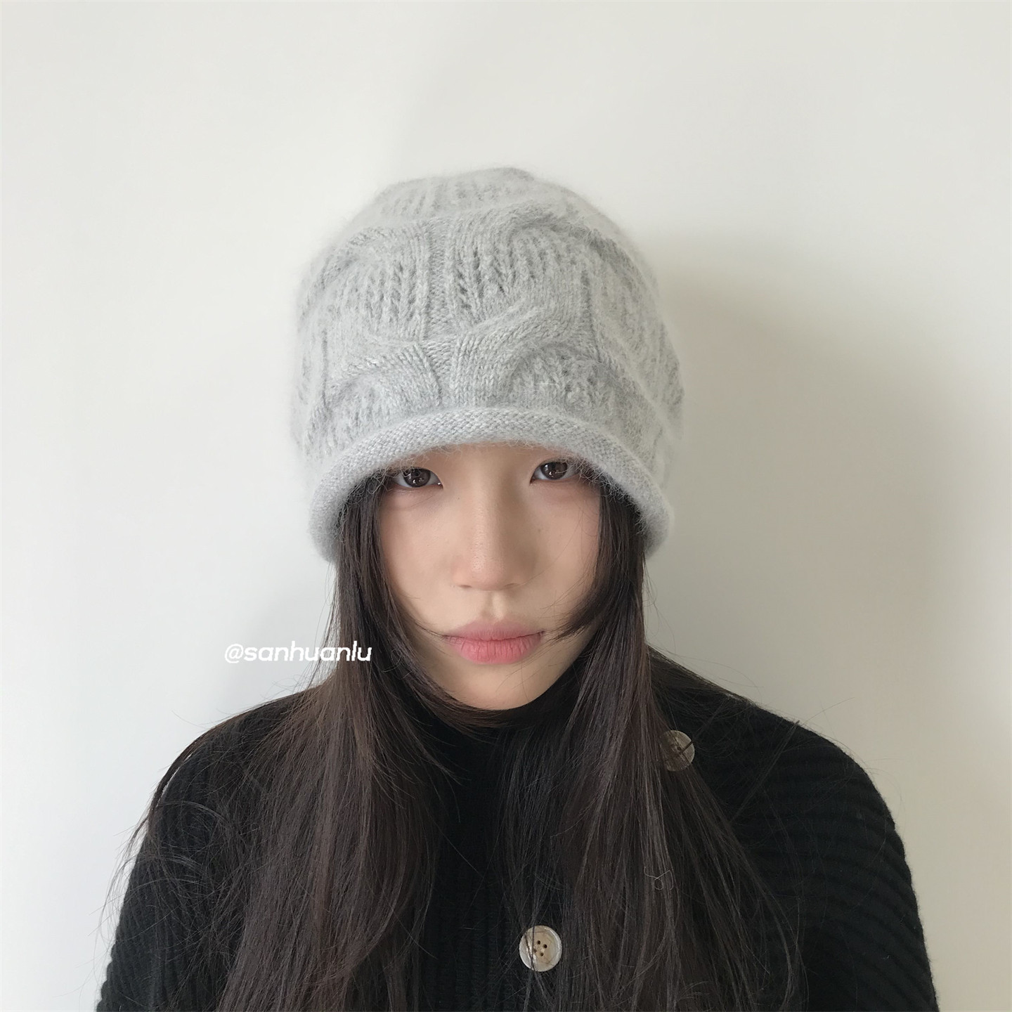 📚 三环路文艺卷边提花包头帽时尚百搭显脸小兔毛奶奶帽毛线帽慵懒风