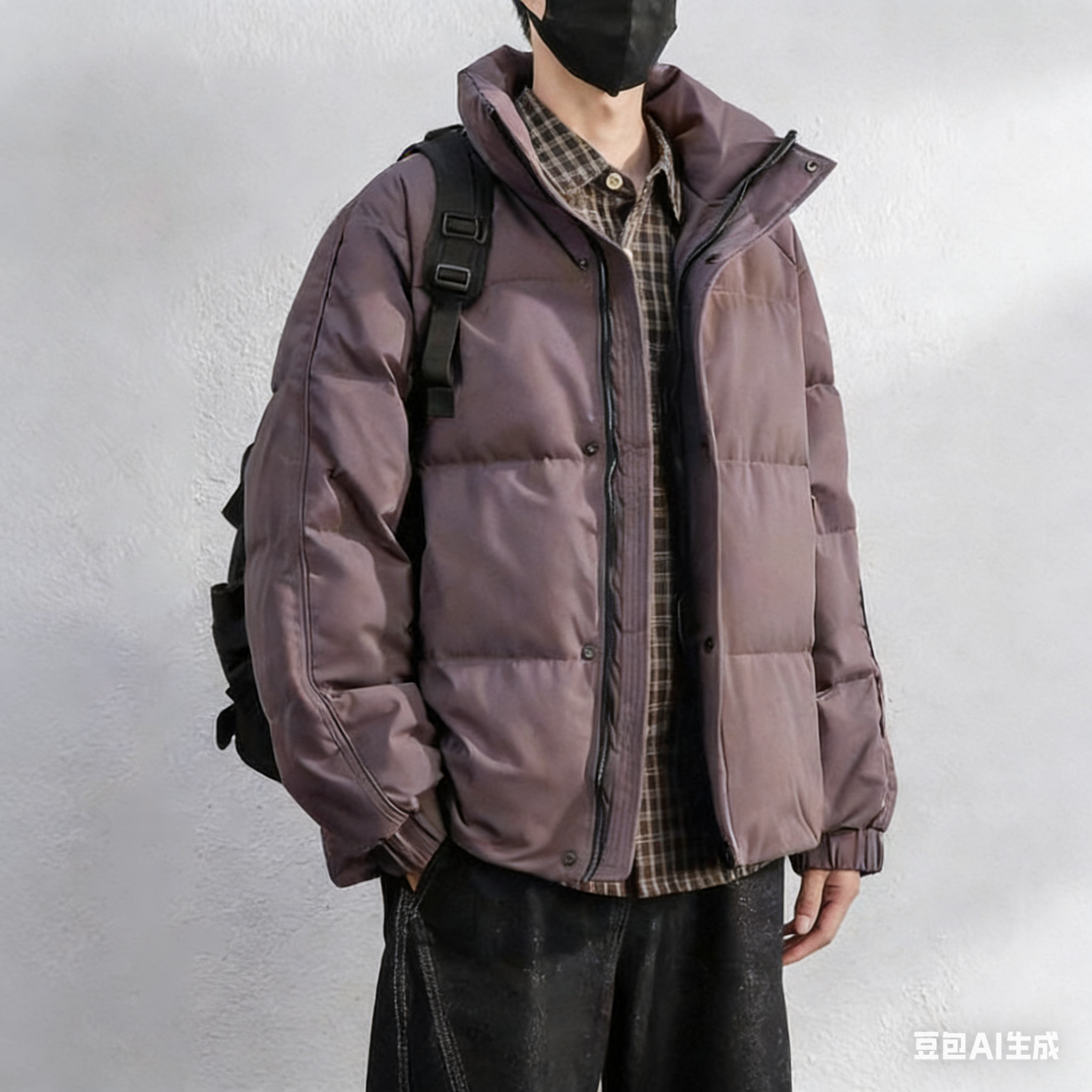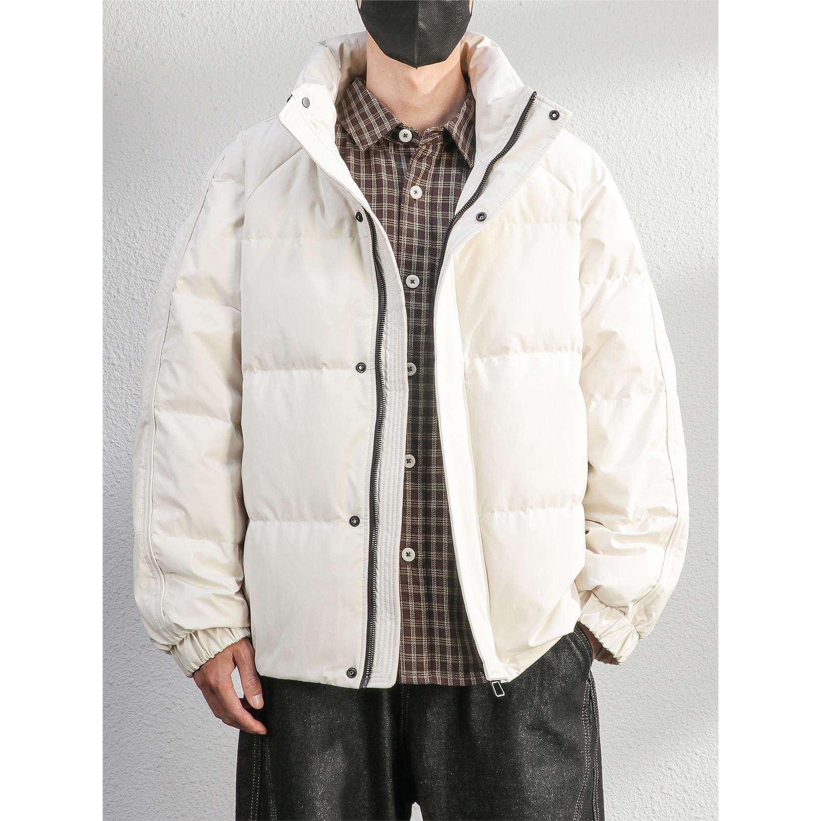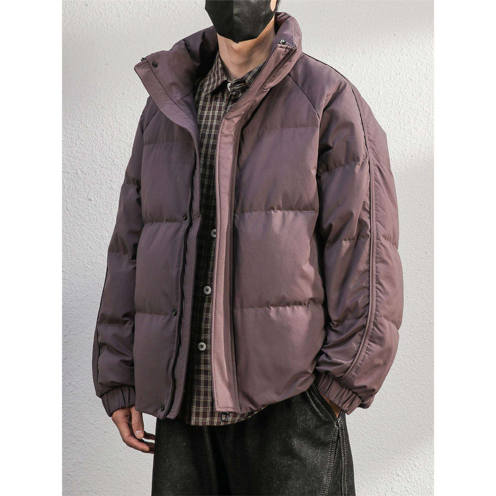 📚 高充90白鸭绒蓬松感紫色羽绒服男士短款冬季保暖加绒立领外套男装