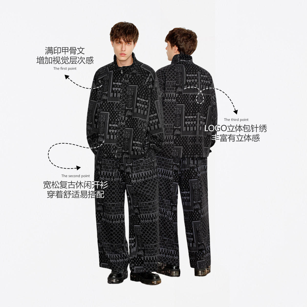 📚 INXX老钱风复古老花外套男满印甲骨文无性别休闲开衫夹克女