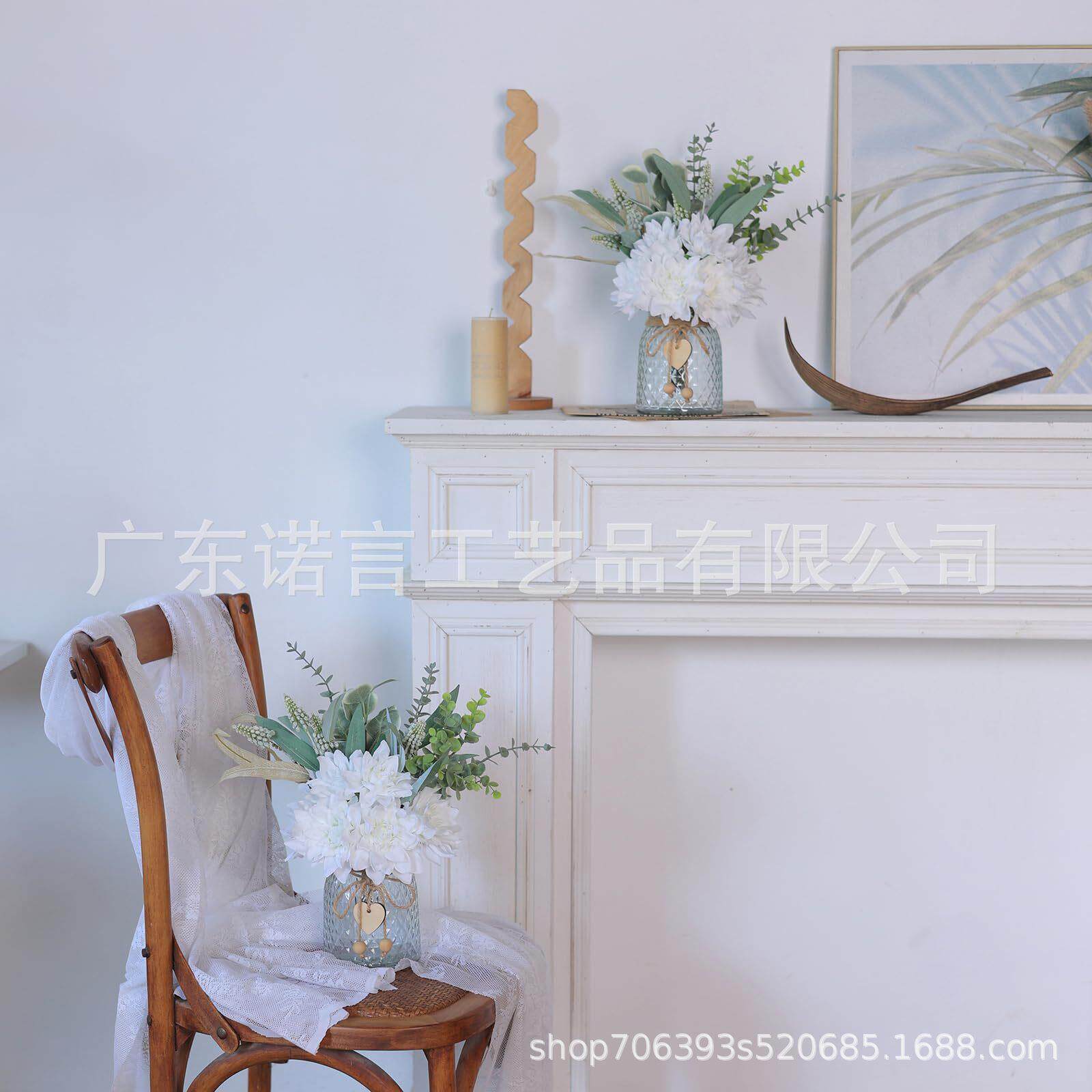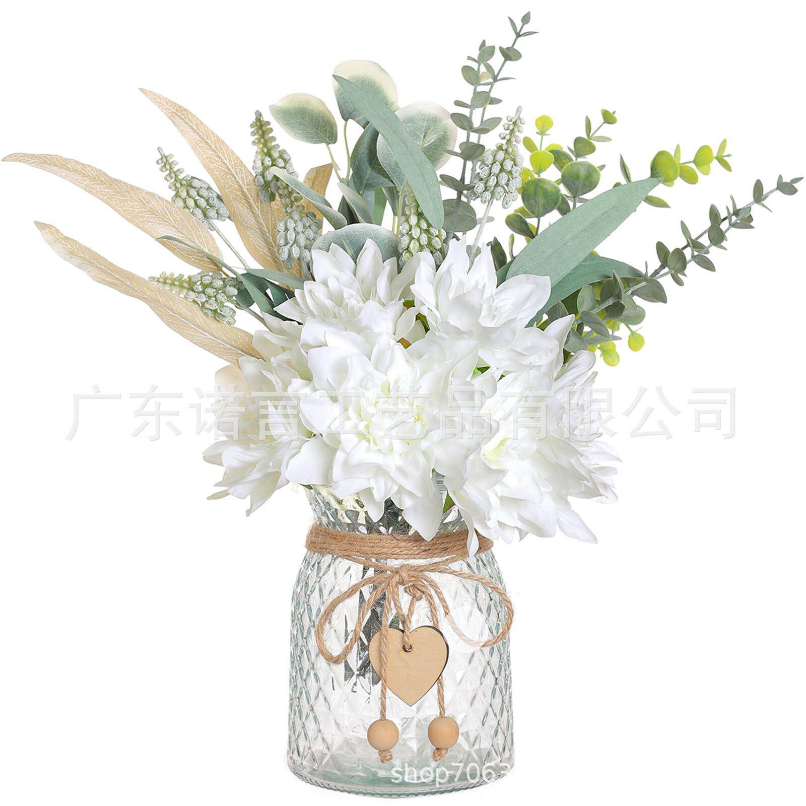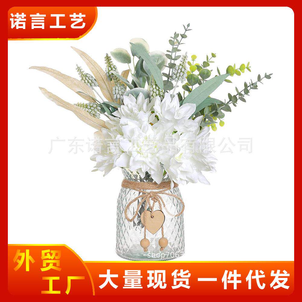 📚 货源手感仿真花玫瑰花束客厅大丽花假花玻璃花瓶套装厂家