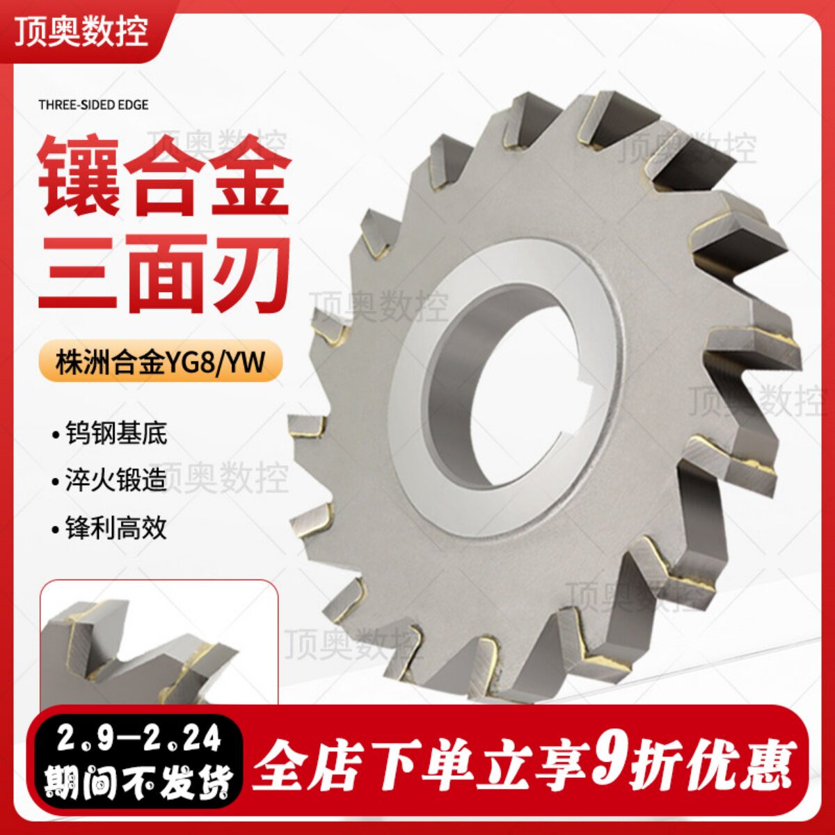 📚 YW镶硬质合金三面刃铣刀直齿镶齿圆盘钨钢铣刀片外圆63 80 2232孔