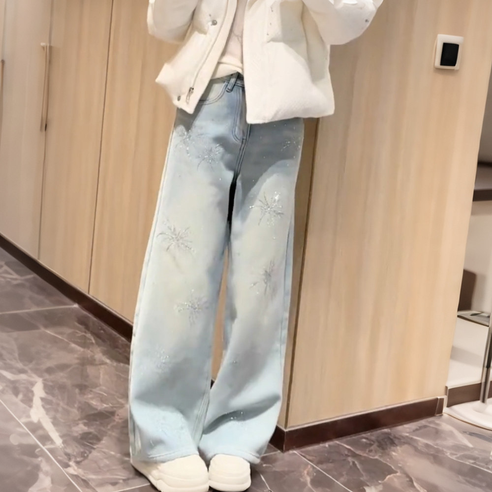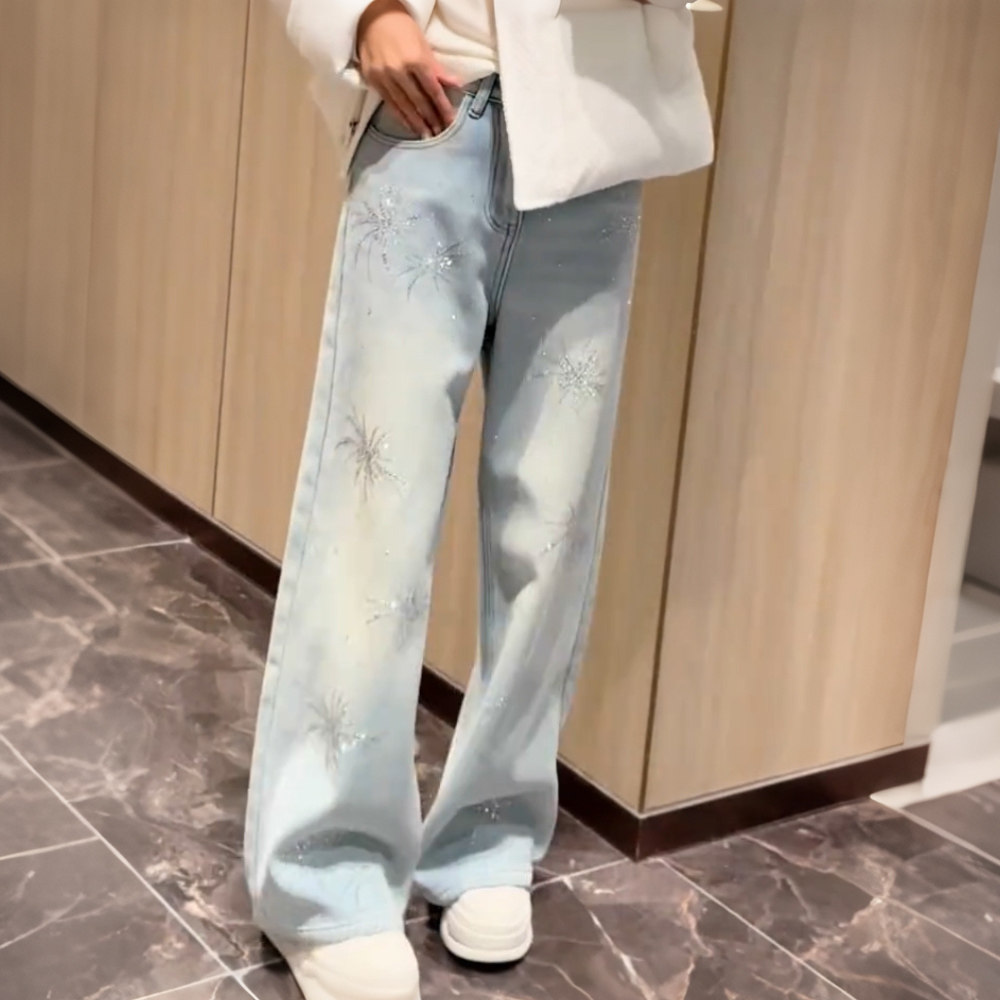 💥心动预热!秋冬新款高腰宽松直筒牛仔裤,设计感烟花闪钻加绒加厚,券后价仅需299✨