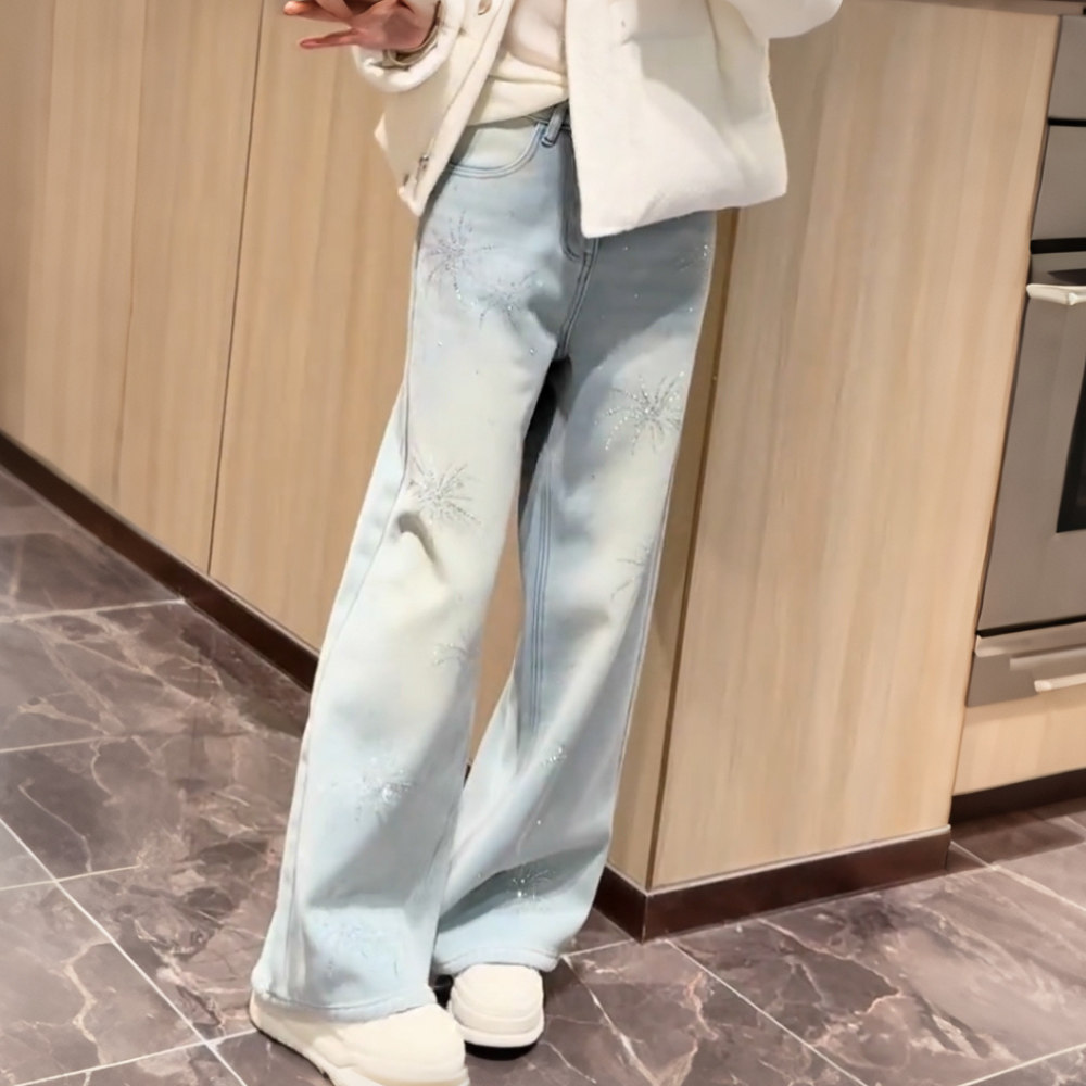 🔥姐妹们,今日推荐绝对不容错过!这款设计感十足的烟花闪钻加绒加厚牛仔裤,绝对是秋冬季节的时尚宠儿!让我带你走进它的魅力世界吧!
