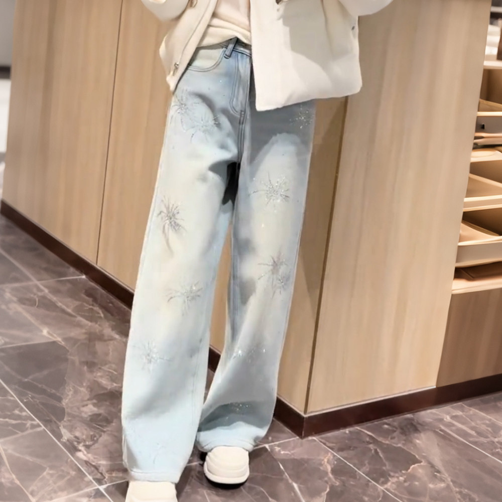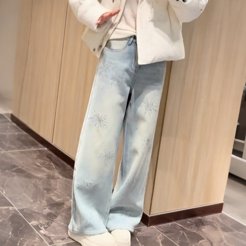 #秋冬新款 #高腰牛仔裤 #加绒加厚 #设计感 #烟花闪钻 #休闲长裤 #券后价