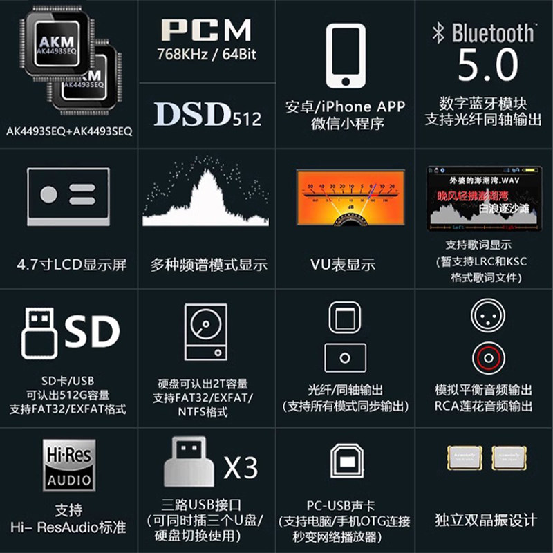 📚 新款博雅4.7寸大屏母带HIFI无损音乐播放器发烧DSD数字转盘解码器
