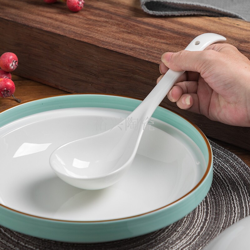 📚 包邮陶瓷特大号长柄汤勺家用砂锅勺餐厅火锅汤锅大汤勺子盛粥汤匙
