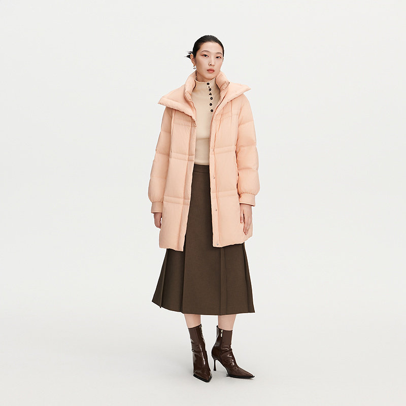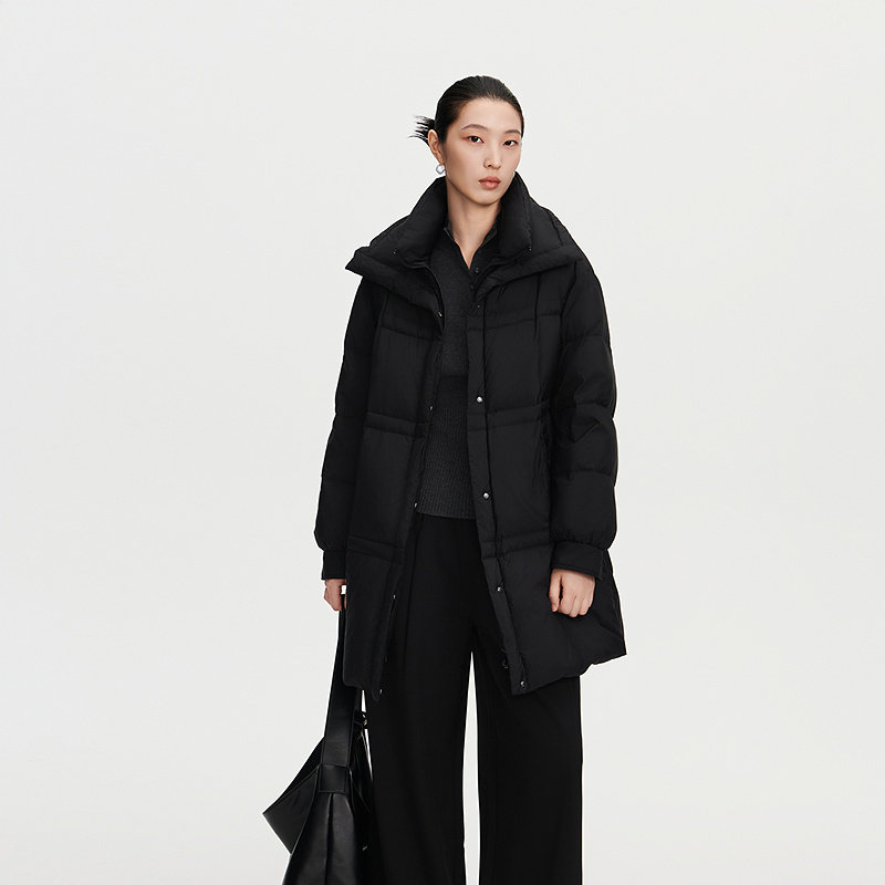 📚 艾莱依双层领羽绒服女商场同款H版型舒适百搭显瘦秋冬中长款外套