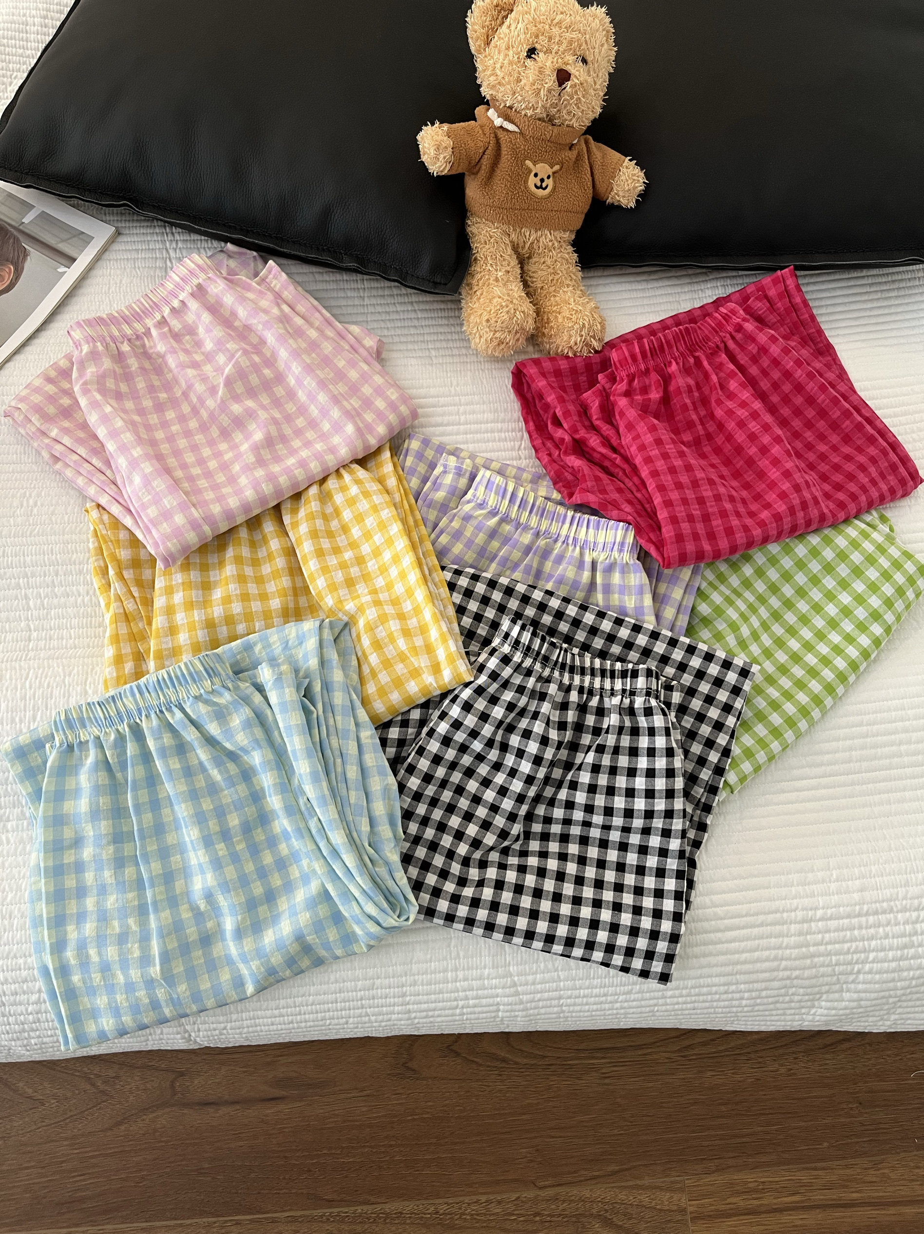 📚 多巴胺日系格子睡裤女夏季薄款遛弯裤泡泡宽松休闲家居长裤可外穿
