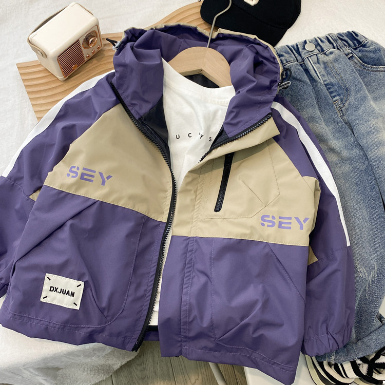 📚 男童外套春秋款2026新款儿童冲锋衣男孩春装潮帅气带帽薄中童小童