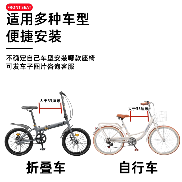 📚 自行车儿童前置座椅山地车弯梁车折叠单车宝宝小孩前坐椅通用
