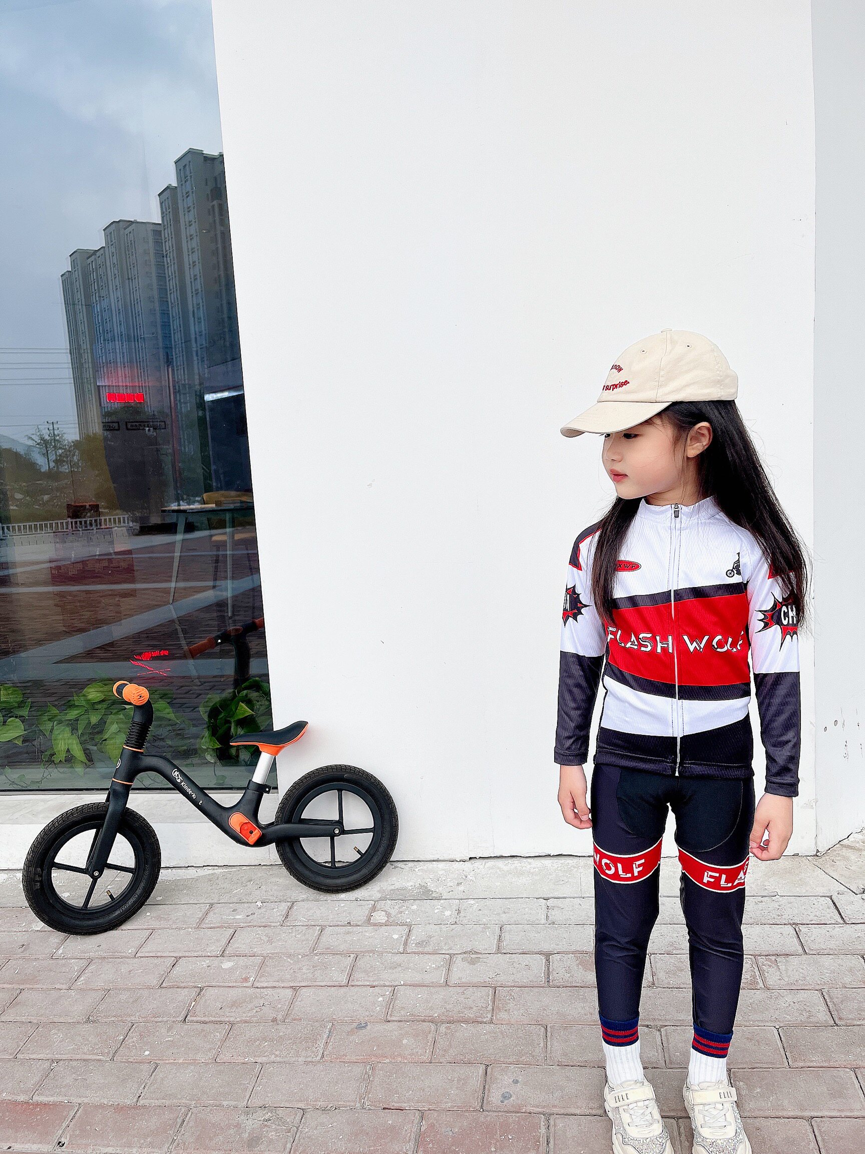 📚 FLASHWOLF 夏季平衡车儿童骑行服速干运动长套装自行车表演赛车服