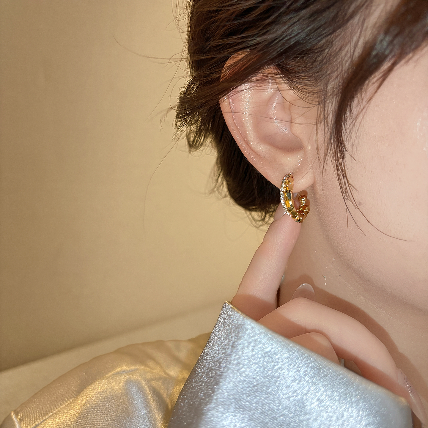 📚 古里雅金色碎银子耳圈女2026新款爆款高级感轻奢耳环方圆脸耳饰品