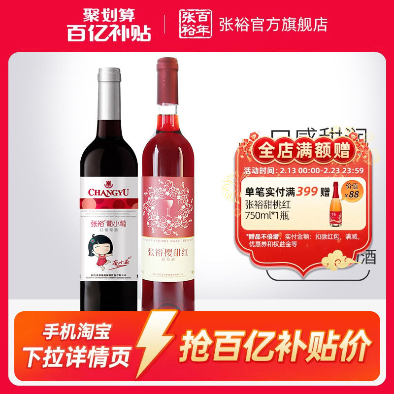 📚 【百补】张裕2瓶甜葡萄酒 双支官旗樱甜红葡小萄赤霞珠红酒正品