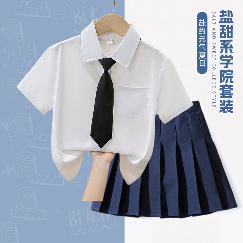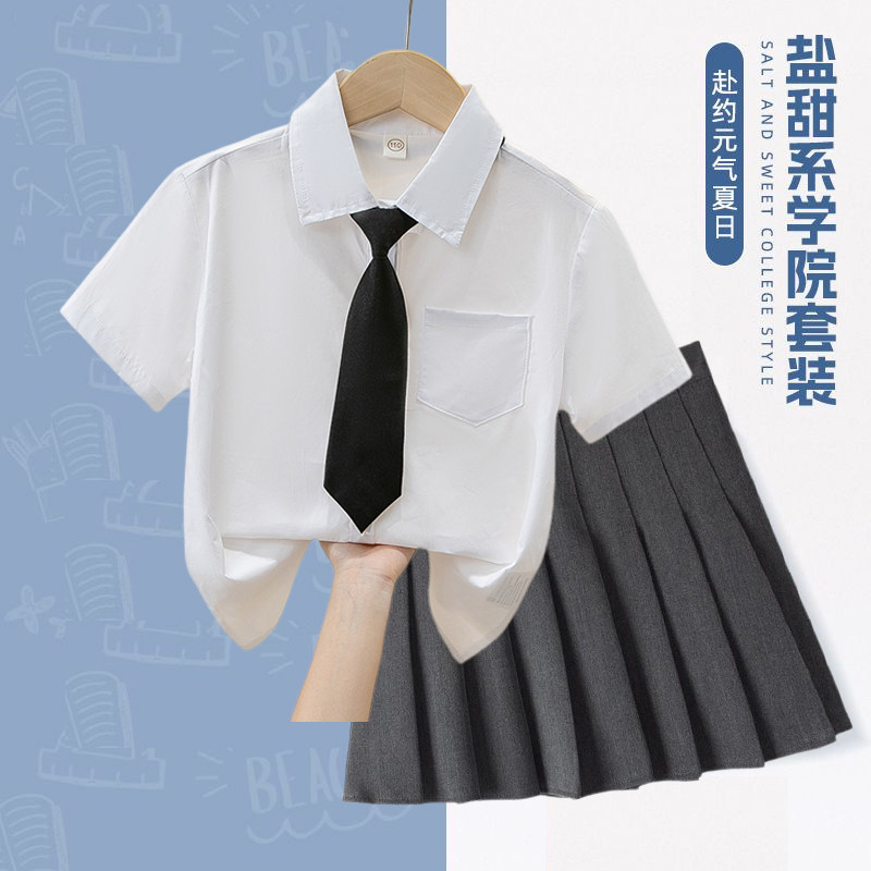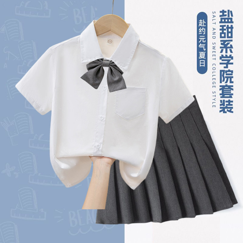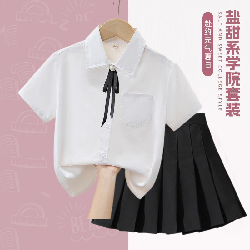 📚 儿童衬衫男女童短袖夏季小学生校服主持演出制服纯棉衬衣jk裙套装