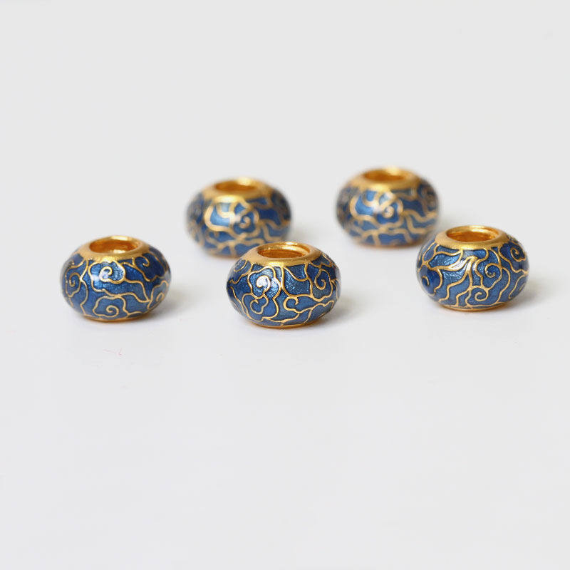 📚 【925纯银镀厚金】宫廷烧珐琅彩内螺纹大孔云纹珠隔珠顶珠diy散珠