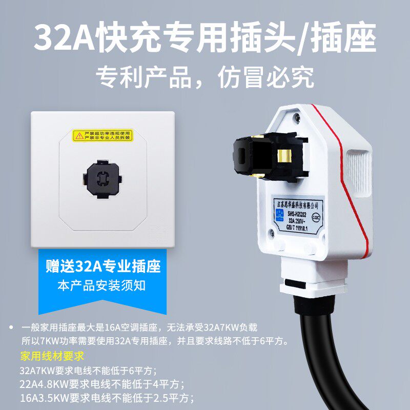 📚 普诺得32A7KW充电桩用插头插座防水防雨大功率耦合器便携专用配件