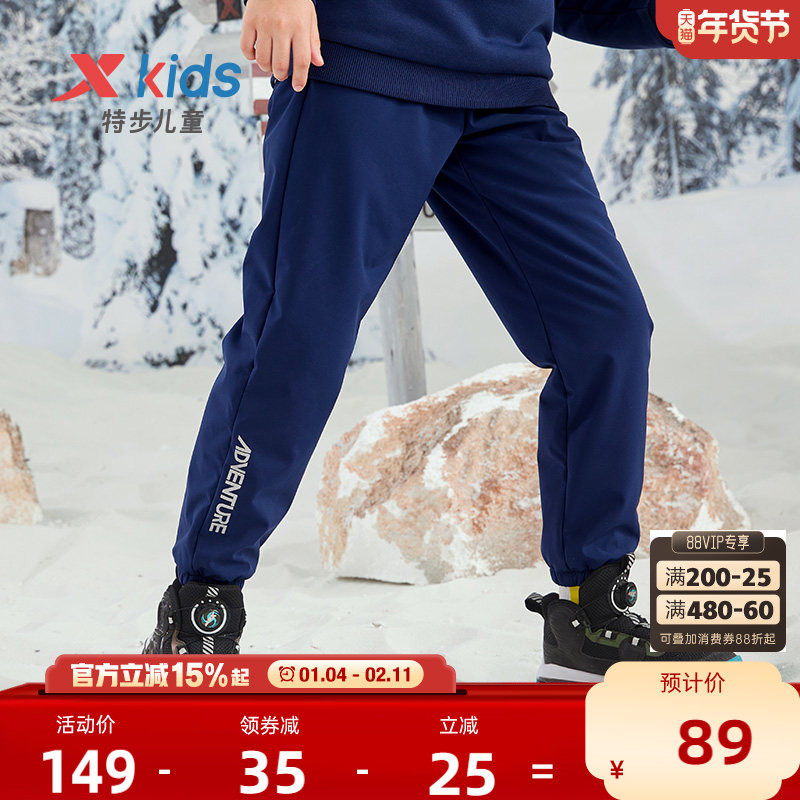 📚 特步童装男童裤子加绒加厚2026秋冬款保暖卫裤运动裤棉裤儿童冬装