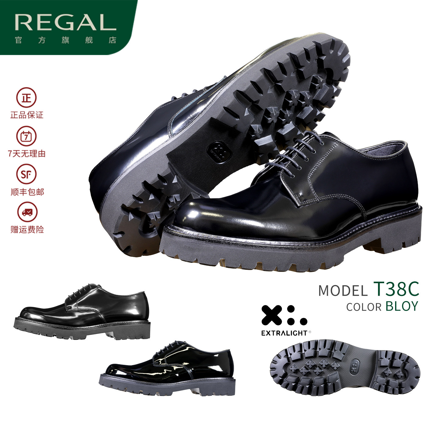 📚 REGAL丽格2025新品T38CXL男士皮鞋牛皮漆皮商务休闲皮鞋德比鞋