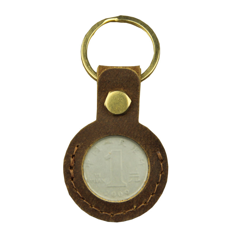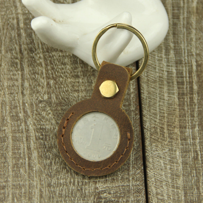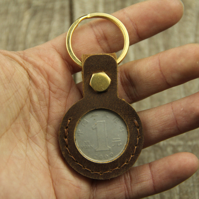 📚 手工牛皮硬币皮套25mm马年纪念币卡套头层牛皮保护套钥匙扣收纳套