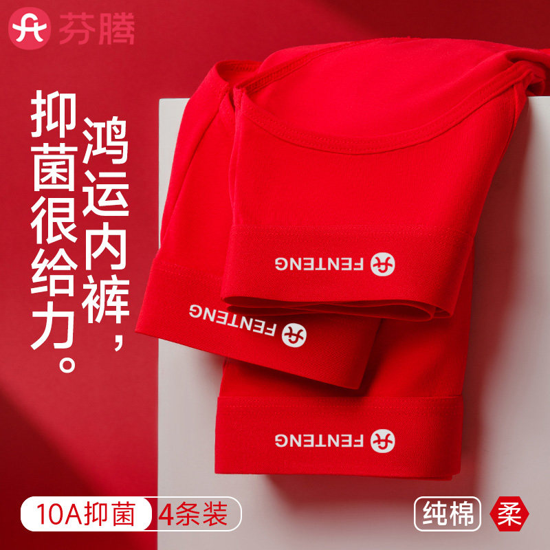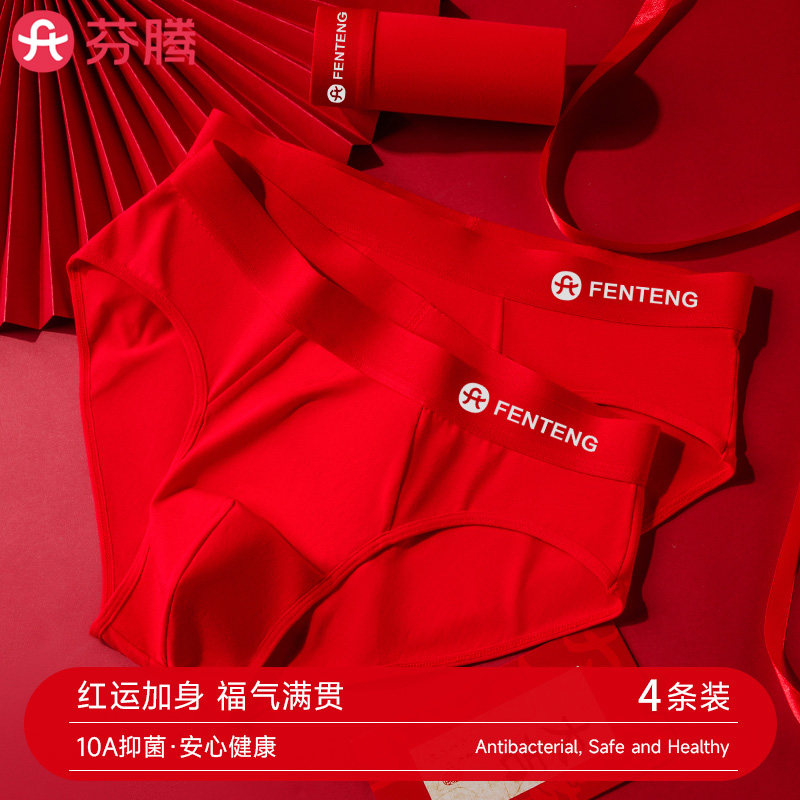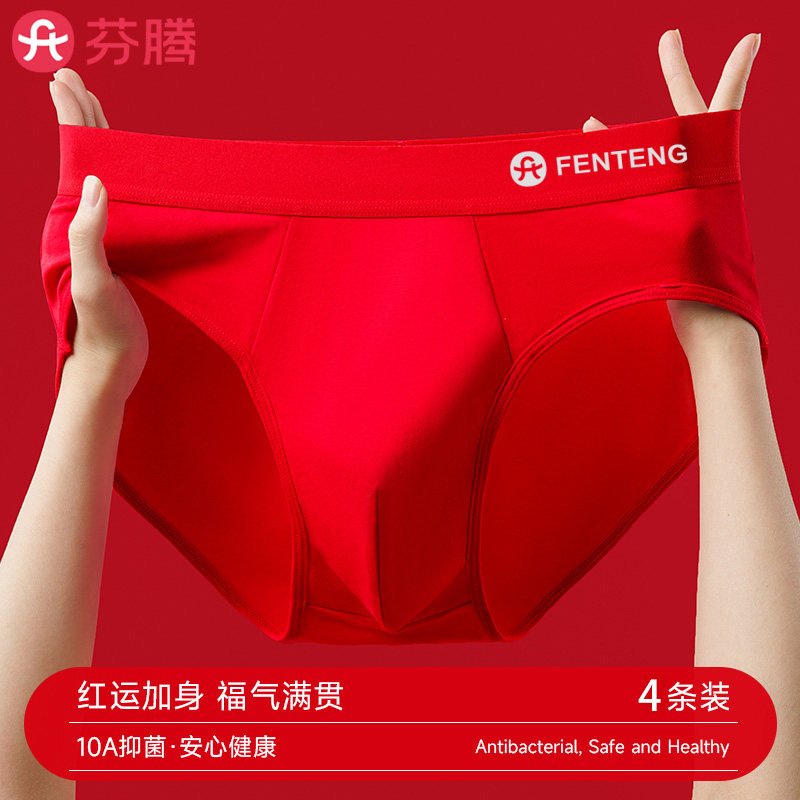 📚 芬腾红色本命年男士三角裤内裤无痕透气A类纯棉10a抗菌男生短裤衩