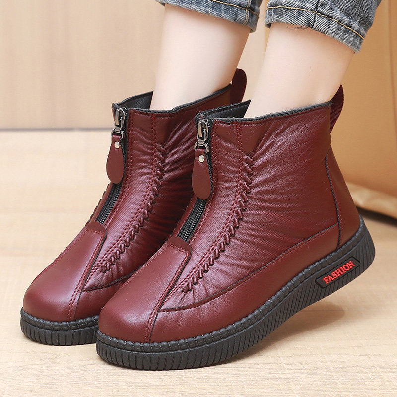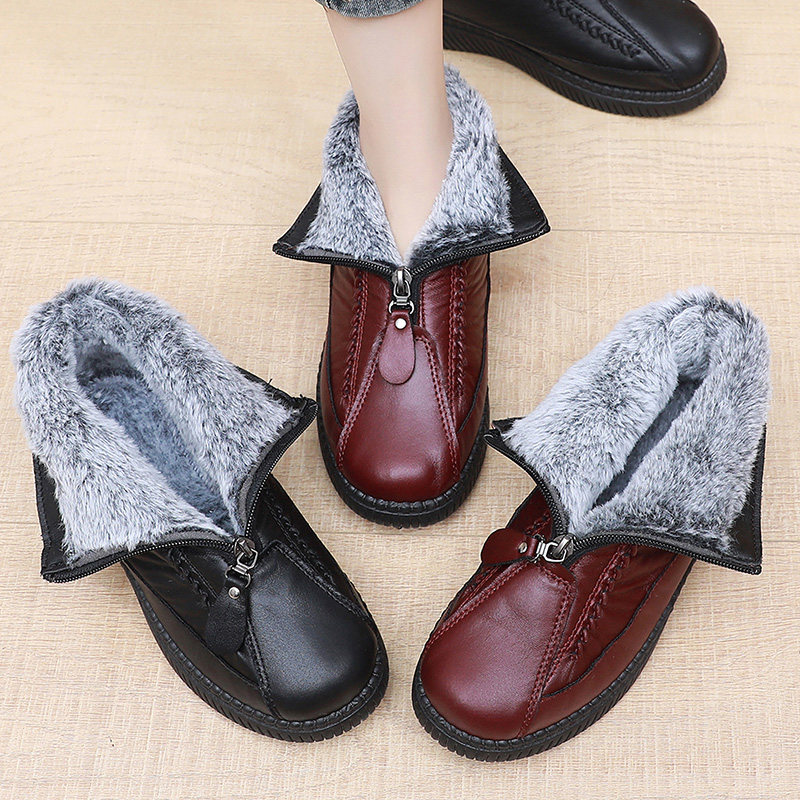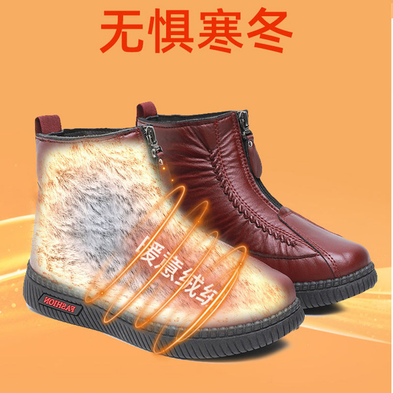 📚 老北京棉鞋女冬加绒保暖棉靴子防水防滑妈妈鞋软底加厚雪地靴皮面