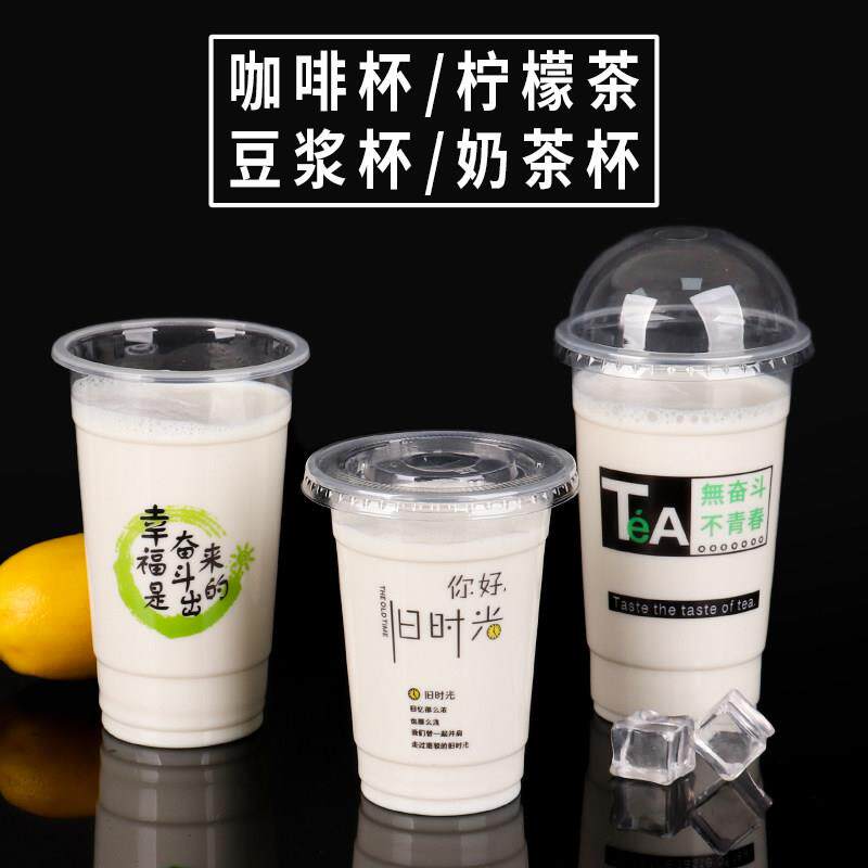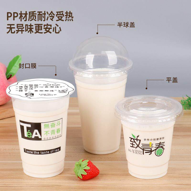 📚 95口径500ml奶茶杯一次性带盖子商用奶茶店专用打包果汁饮料柠檬
