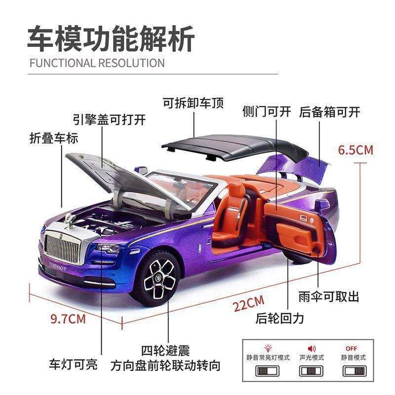 📚 新奥1:24劳斯曜影敞篷GT跑车模型收藏仿真立标汽车合金摆件玩具车