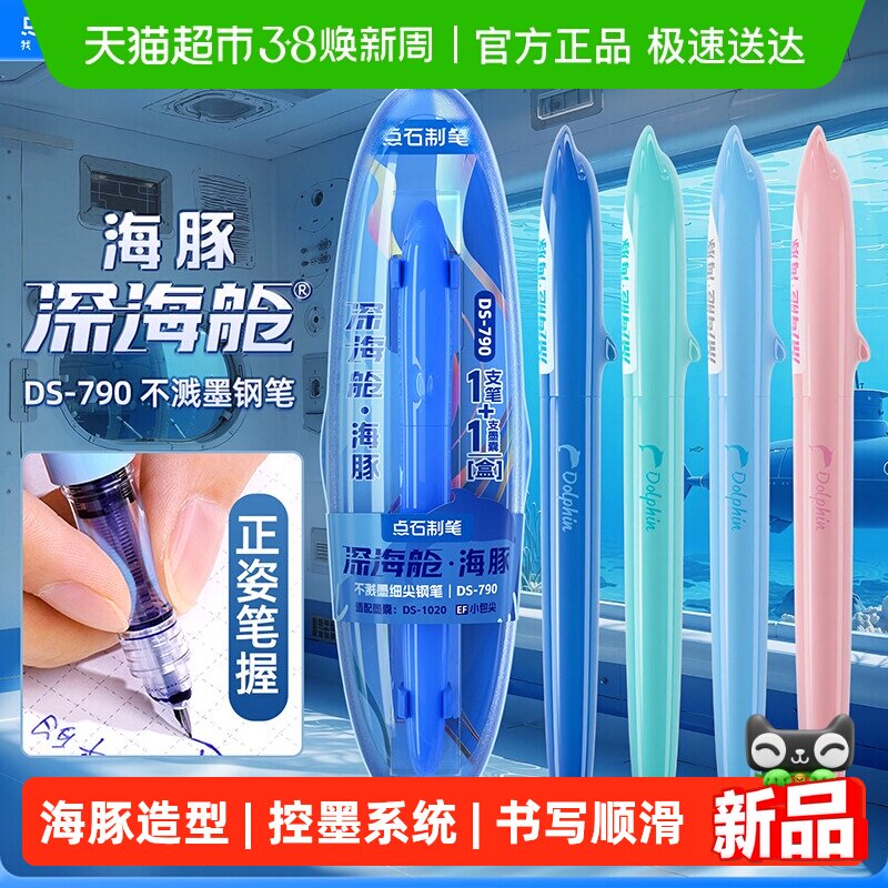 📚 点石深海舱海豚钢笔三年级小学生用细尖EF尖可换墨囊初中学生练字