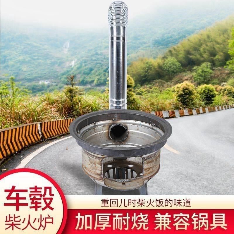 📚 汽车轮毂a柴火灶农村家用加厚多功能灶户外野营专用室外炉灶材火