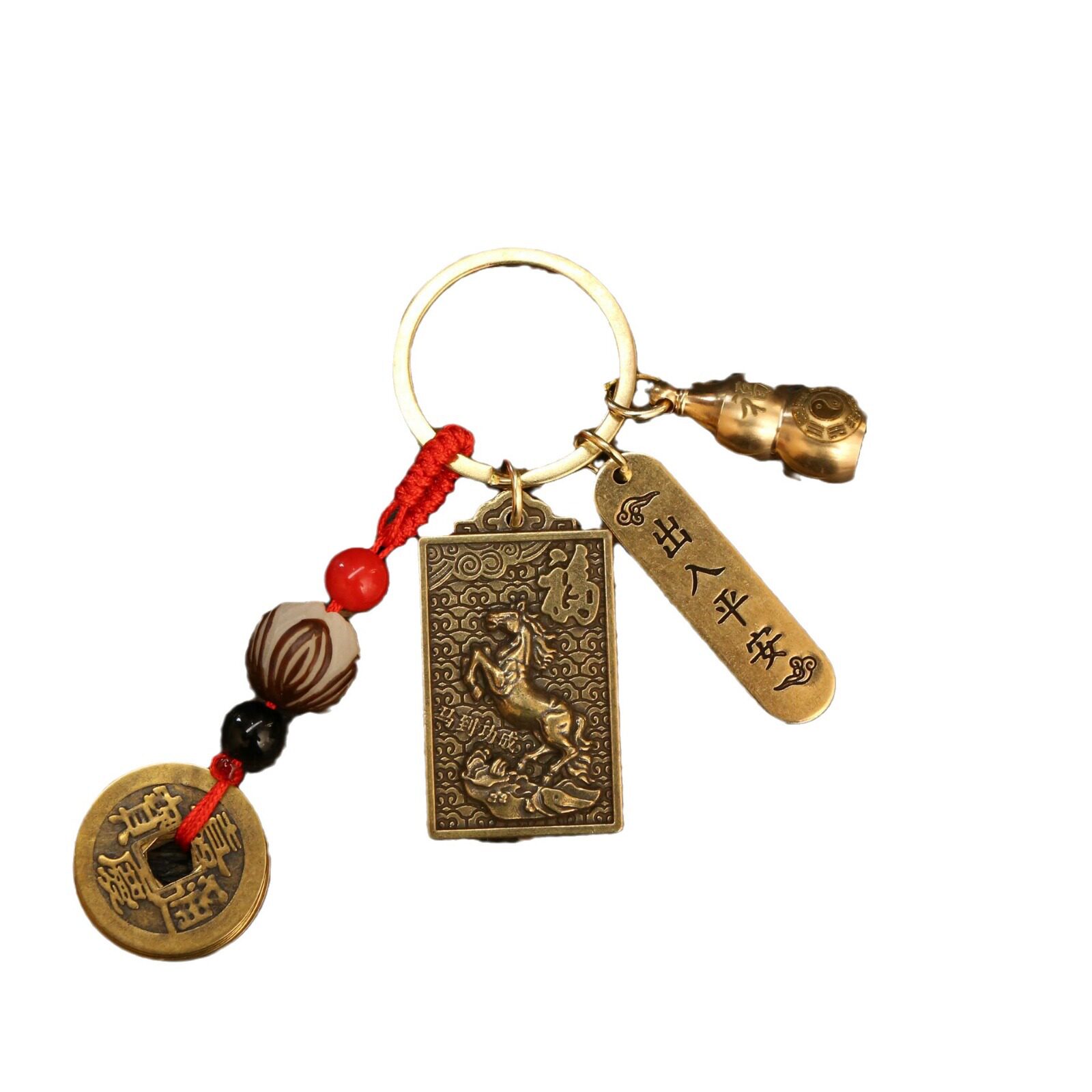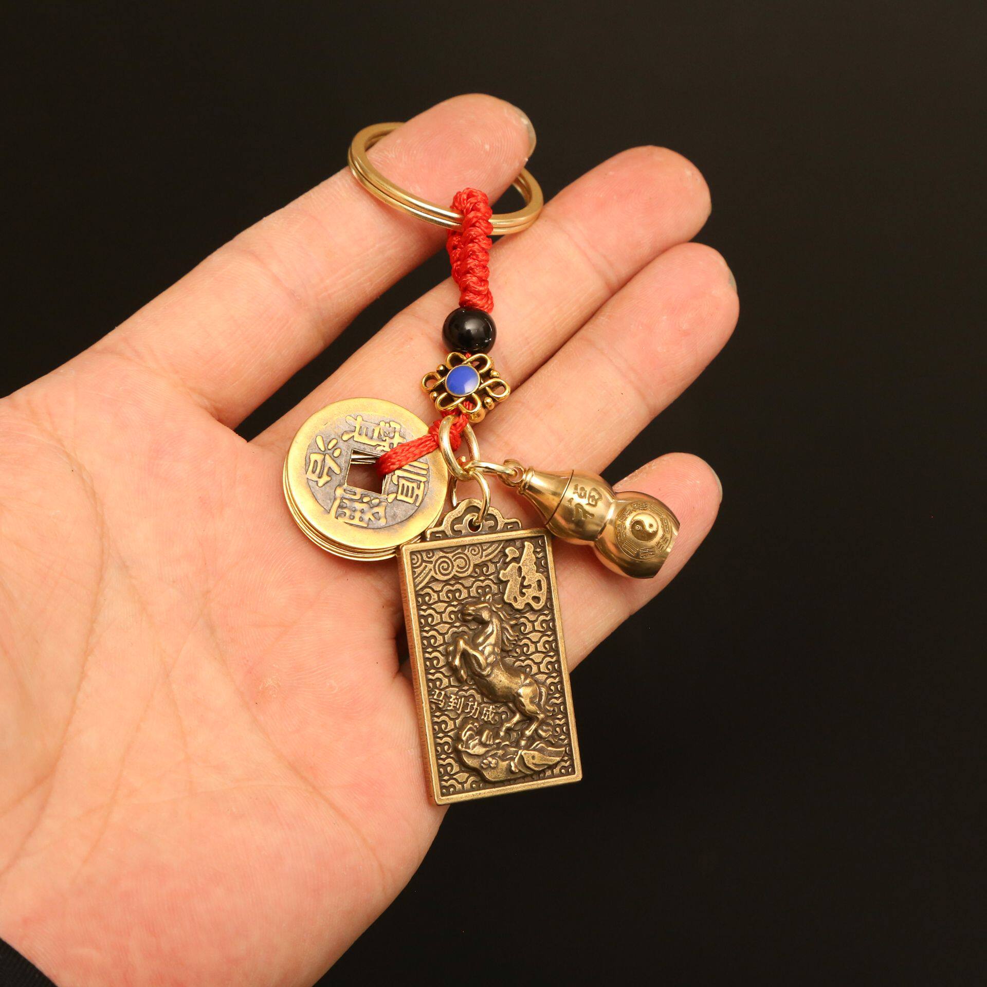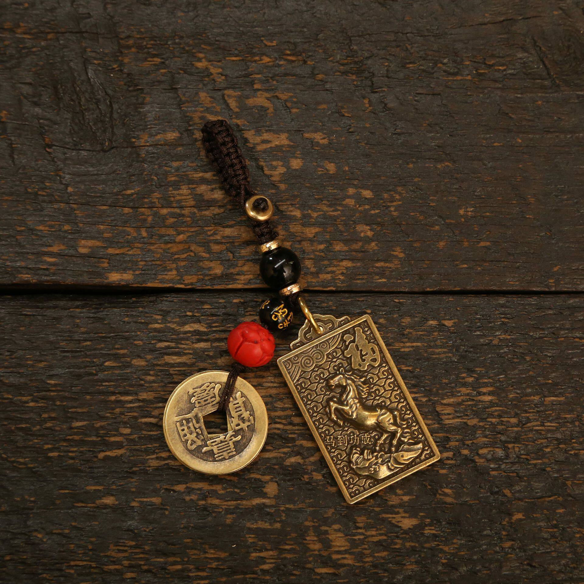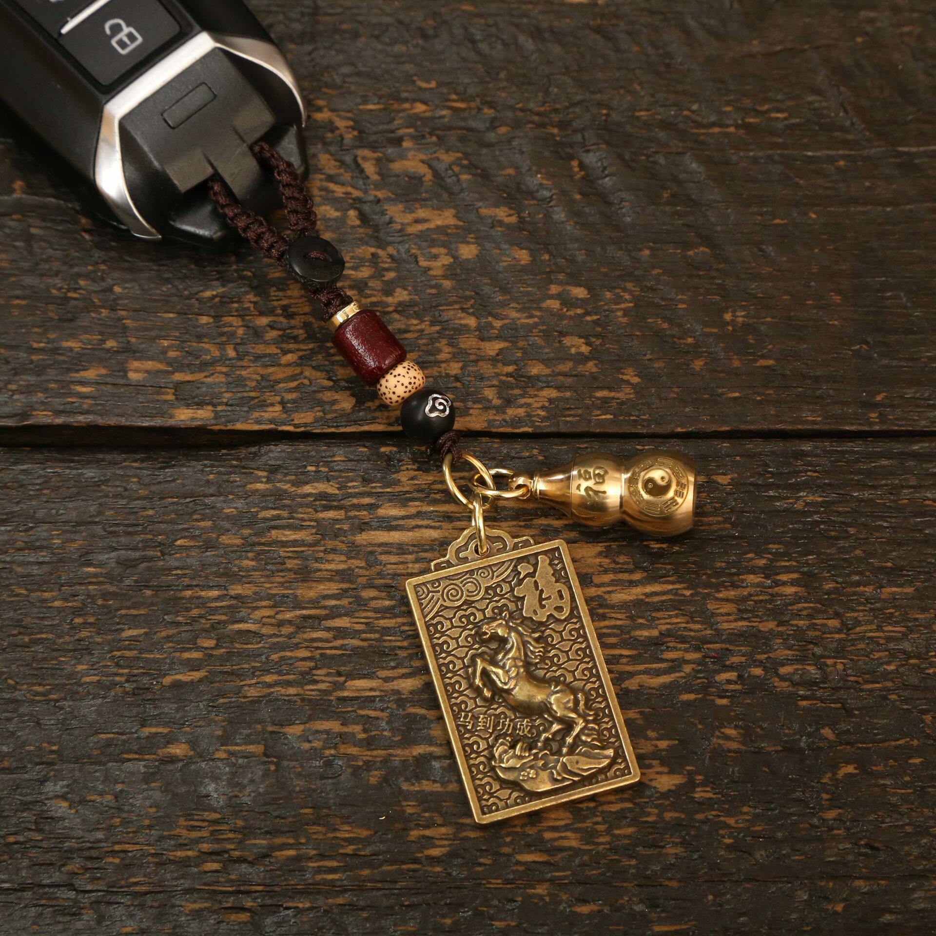 📚 叕凡2026新款马年黄铜方形钥匙扣马到成功汽车挂件男女包包八卦款