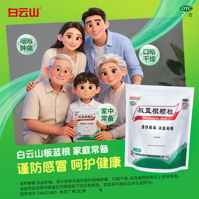 📚 白云山板蓝根颗粒凉茶清热解毒咽喉痛扁桃体炎感冒药官方旗舰店