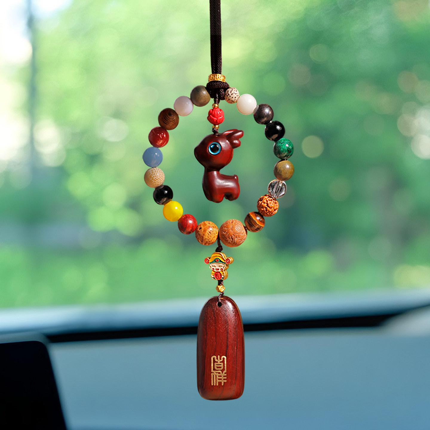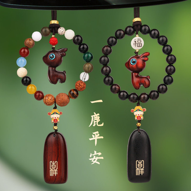 📚 出入平安檀木小鹿车载挂件高档后视镜吊饰网红车吊坠2025新款女生