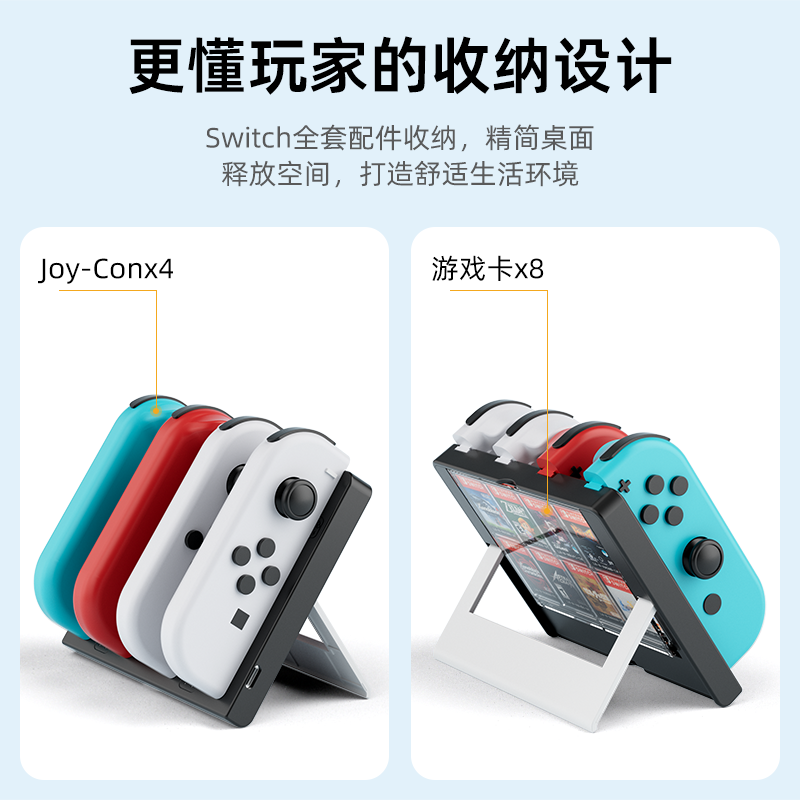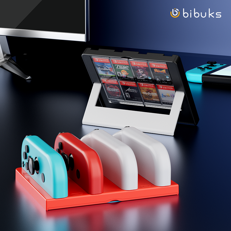 📚 Bibuks适用任天堂Switch手柄充电座Joycon充电底座NS便携式充电器四joy手柄充电架可放8张游戏卡带盒3合1配件