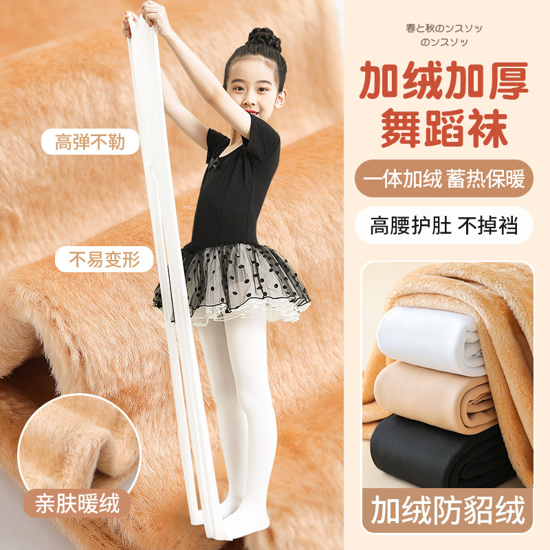 📚 女童舞蹈袜秋冬季加绒加厚白跳舞练功专用打底裤一体绒儿童连裤袜