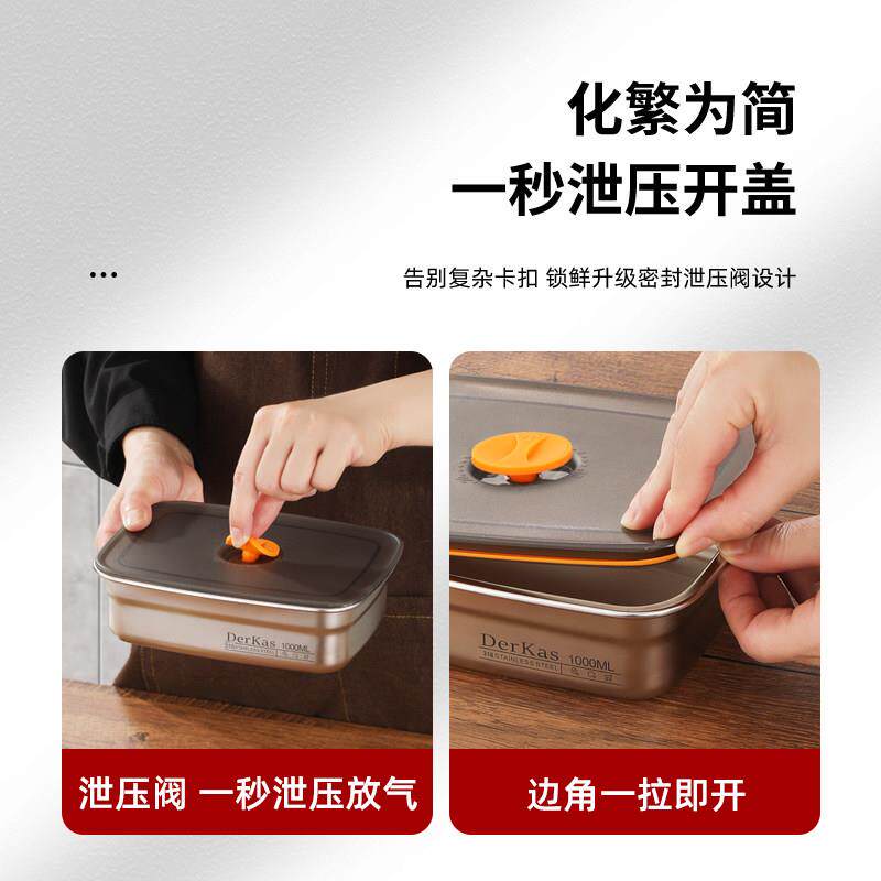 📚 DERKAS 1500ml升级计时316不锈钢保鲜盒真空密封收纳盒饭盒