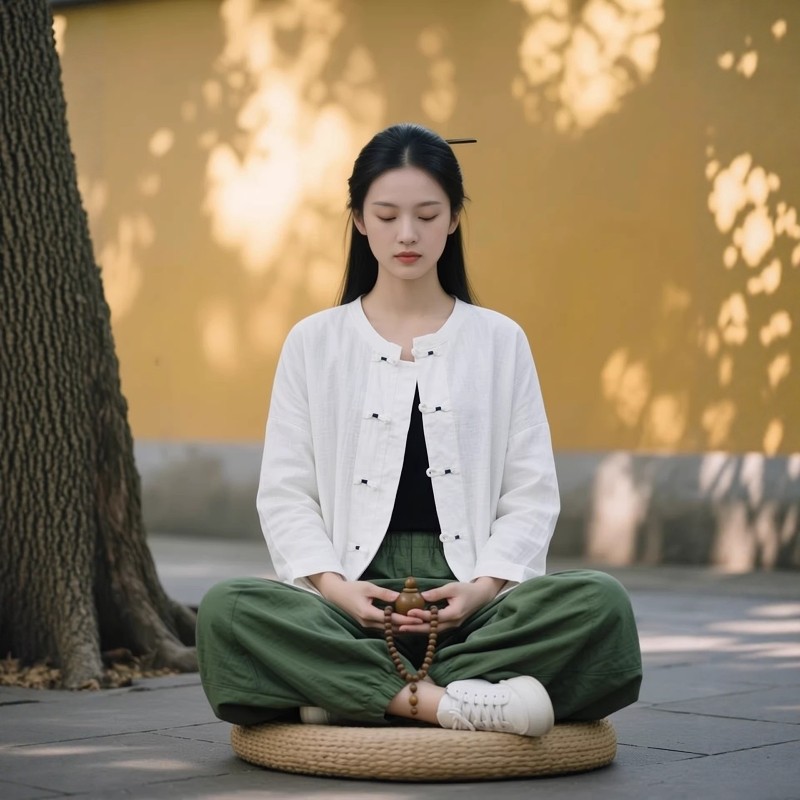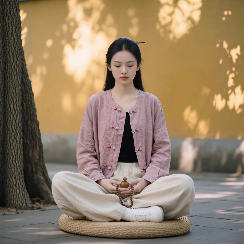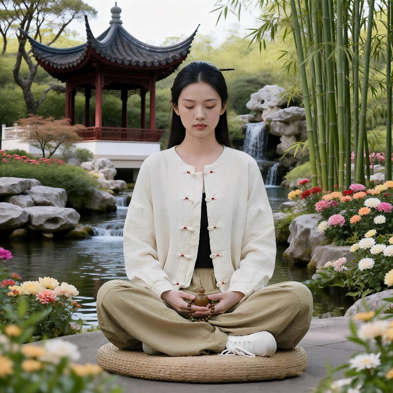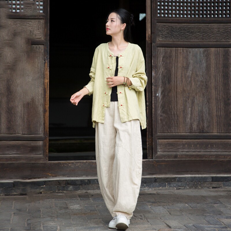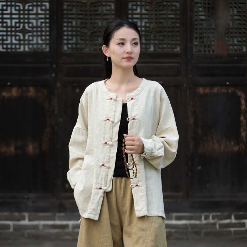 📚 新中式佛系禅意居士服女款棉麻盘扣上衣开衫寺院打坐禅修服女套装