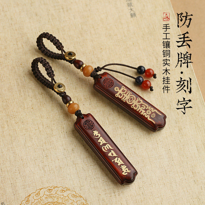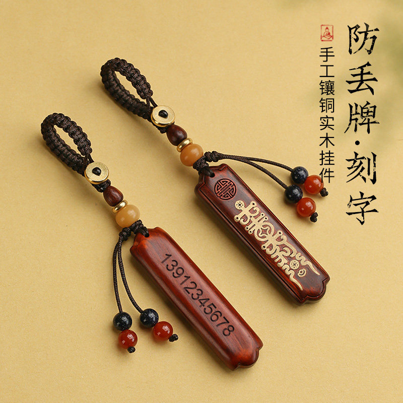 📚 紫檀木车钥匙扣防丢电话号码牌平安无事牌创意挂件刻字挂饰挂坠男