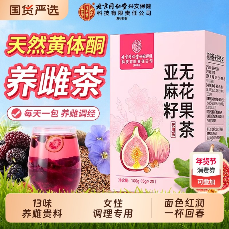 📚 同仁堂黄体酮养雌茶种子循环女生泡水喝亚麻籽无花果黑豆黑枸杞